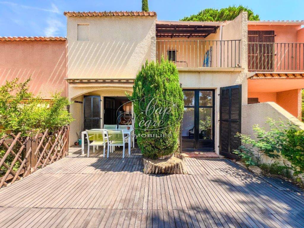 Dans une résidence privée sécurisée, à quelques minutes à pied de la superbe plage de Pramousquier dite "La Mystérieuse", ce charmant mazet d'environ 53m² sur deux niveaux comprend: