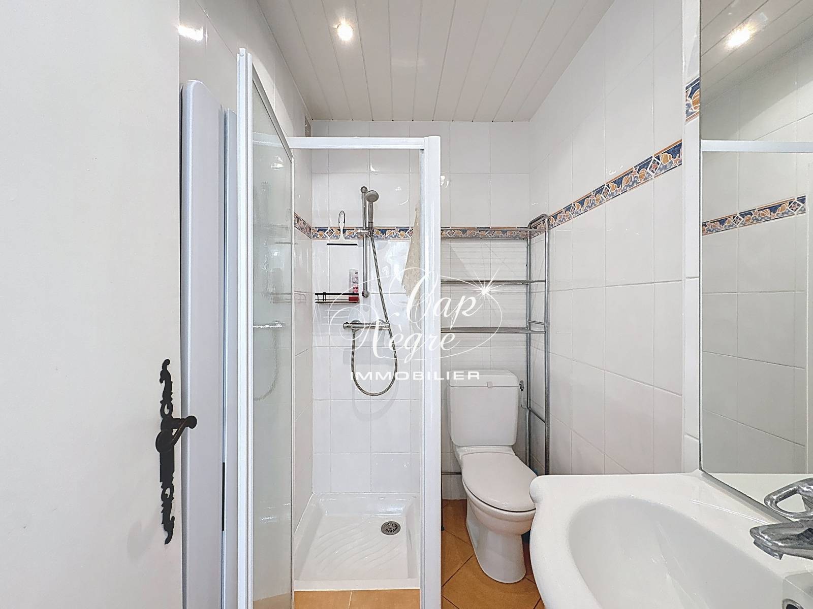 Une salle d’eau fonctionnelle avec toilettes.