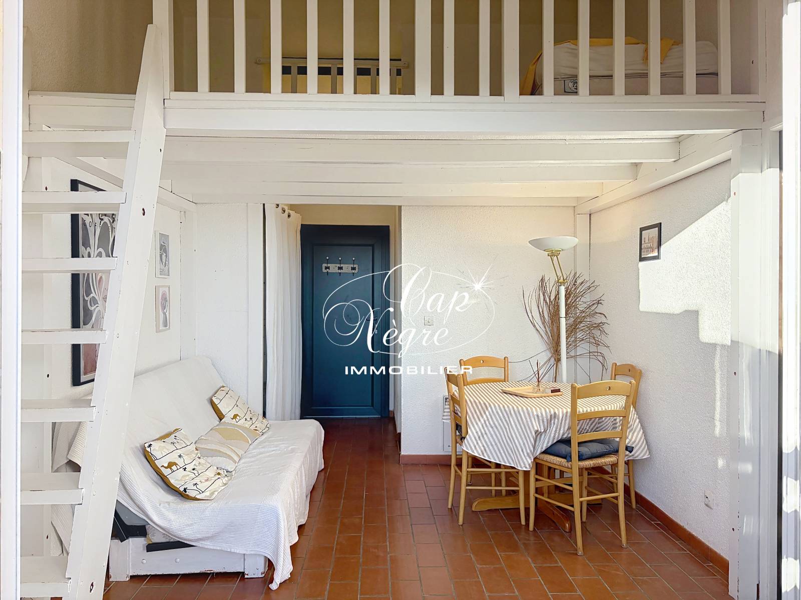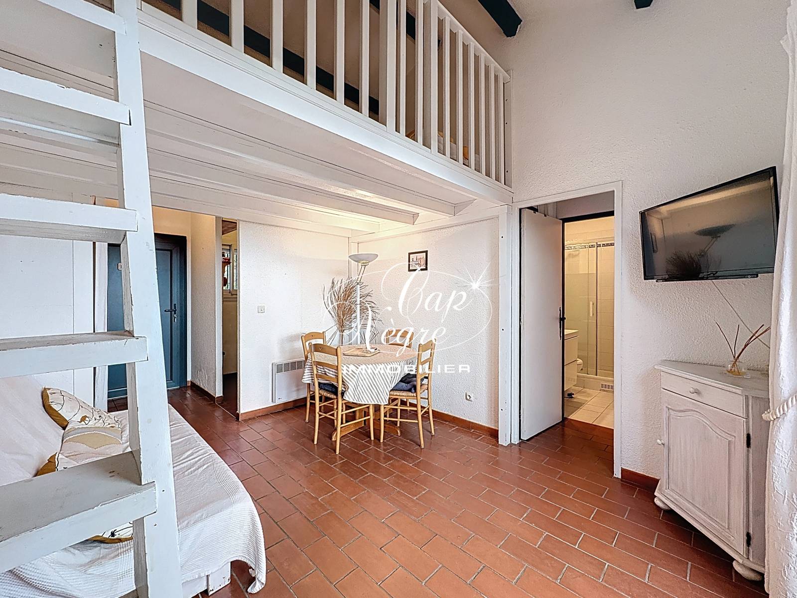 En complément, une mezzanine de 8 m² surplombe le séjour, offrant un espace nuit supplémentaire, un coin bureau ou un espace détente selon vos besoins.
