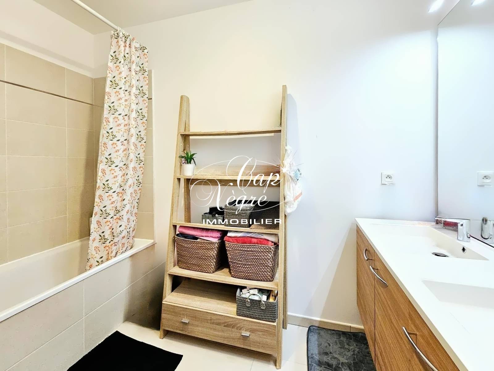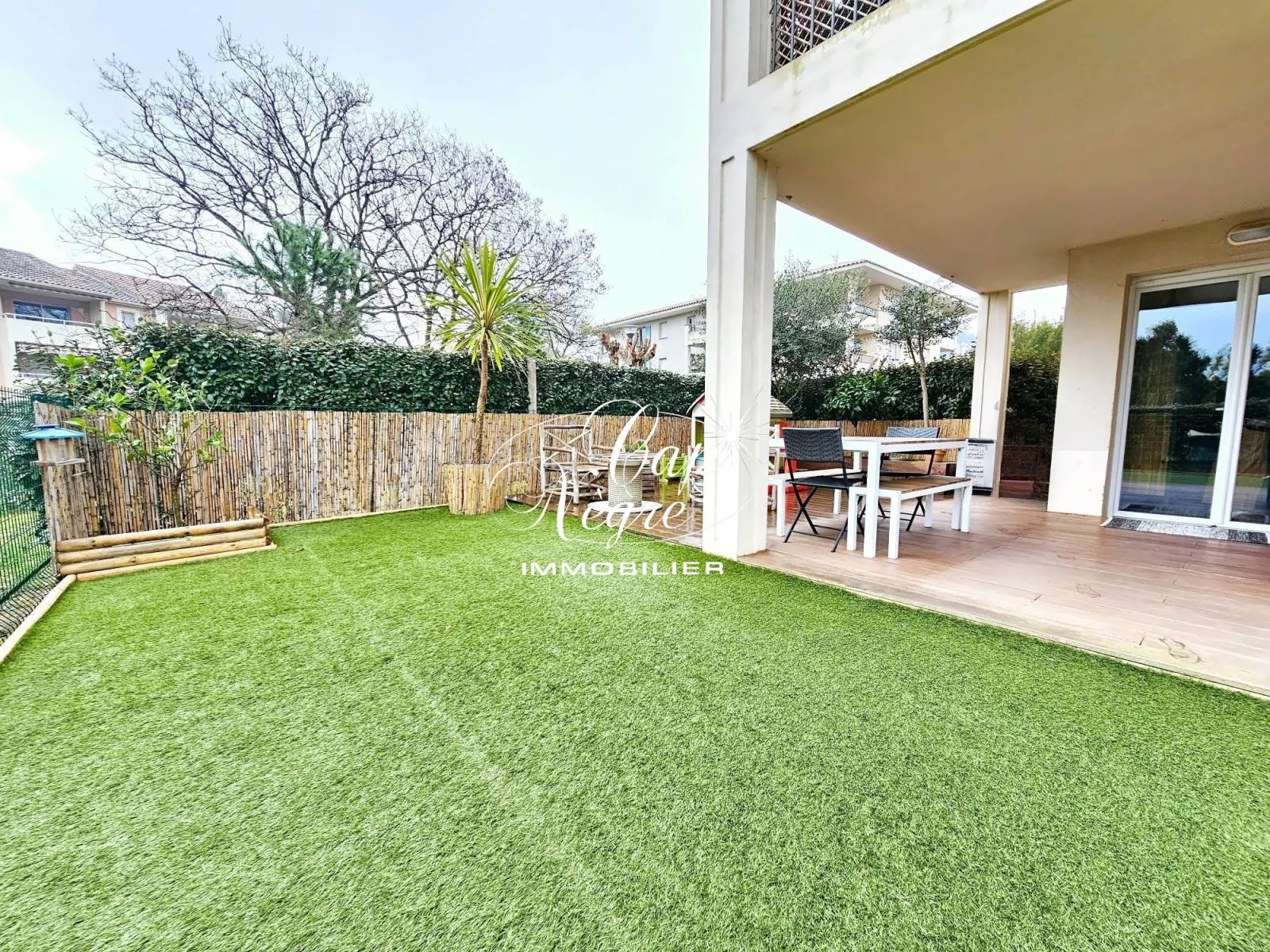 L’extérieur constitue un véritable atout, avec une terrasse couverte de 15 m² prolongée par un jardin privatif paysager de plus de 60 m², offrant un espace de détente idéal pour profiter pleinement du climat méditerranéen.