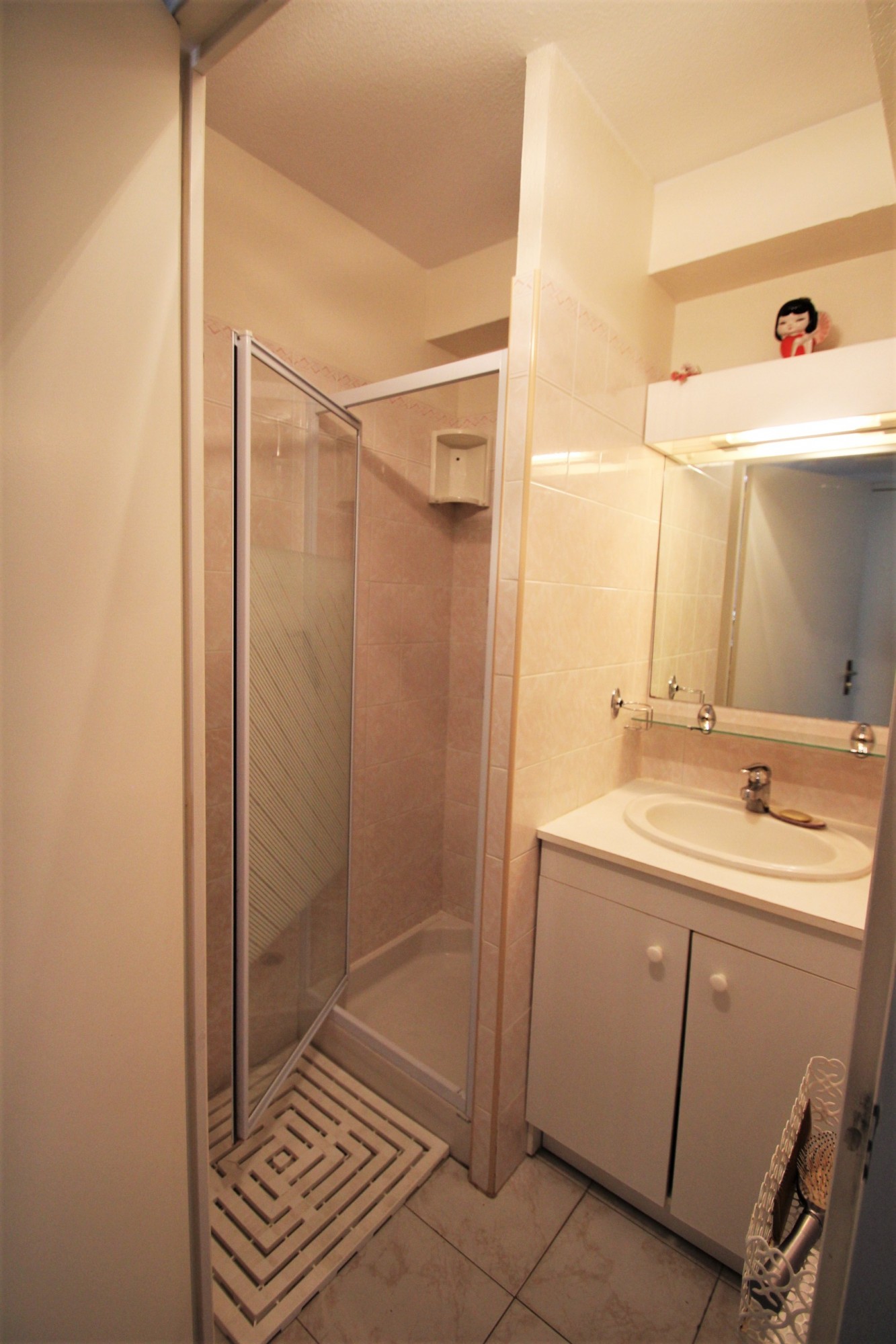 Entrée, spacieux séjour avec cuisine ouvrant sur une belle terrasse exposé Sud, chambre + une en mezzanine, salle d'eau, WC séparés.