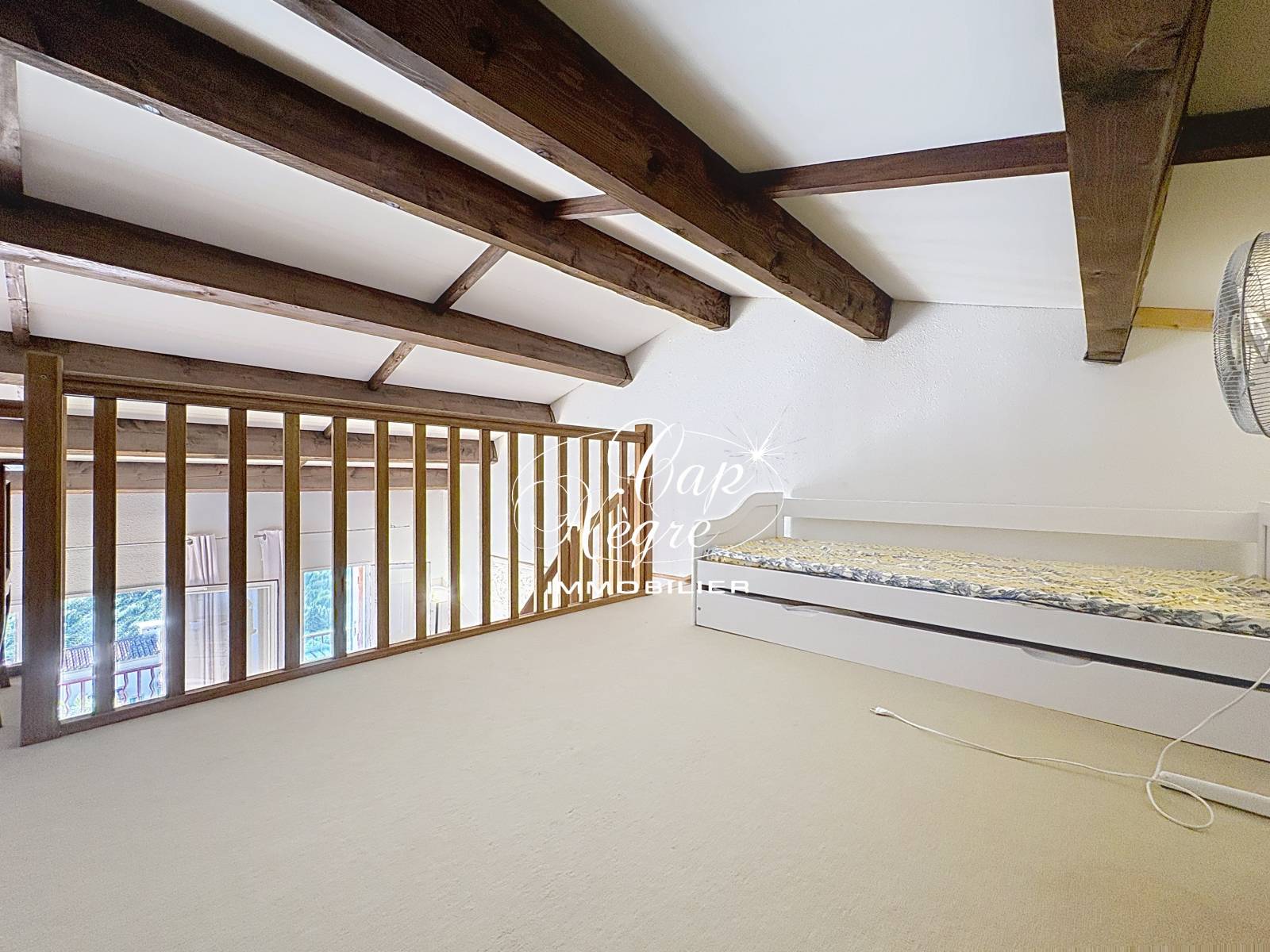 La configuration intérieure séduira tant par son agencement que par son potentiel. La mezzanine, accessible depuis le séjour, offre un bel espace modulable pouvant accueillir une chambre, un bureau ou un lieu de détente selon les besoins. La chambre principale, le WC indépendant et la salle de bains complètent un ensemble fonctionnel et confortable. La cuisine, tout comme les installations incluant réfrigérateur, lave-vaisselle et lave-linge, rendent le tout pratique et fonctionnel. Le double vitrage garantit quant à lui un confort thermique appréciable en toute saison.
