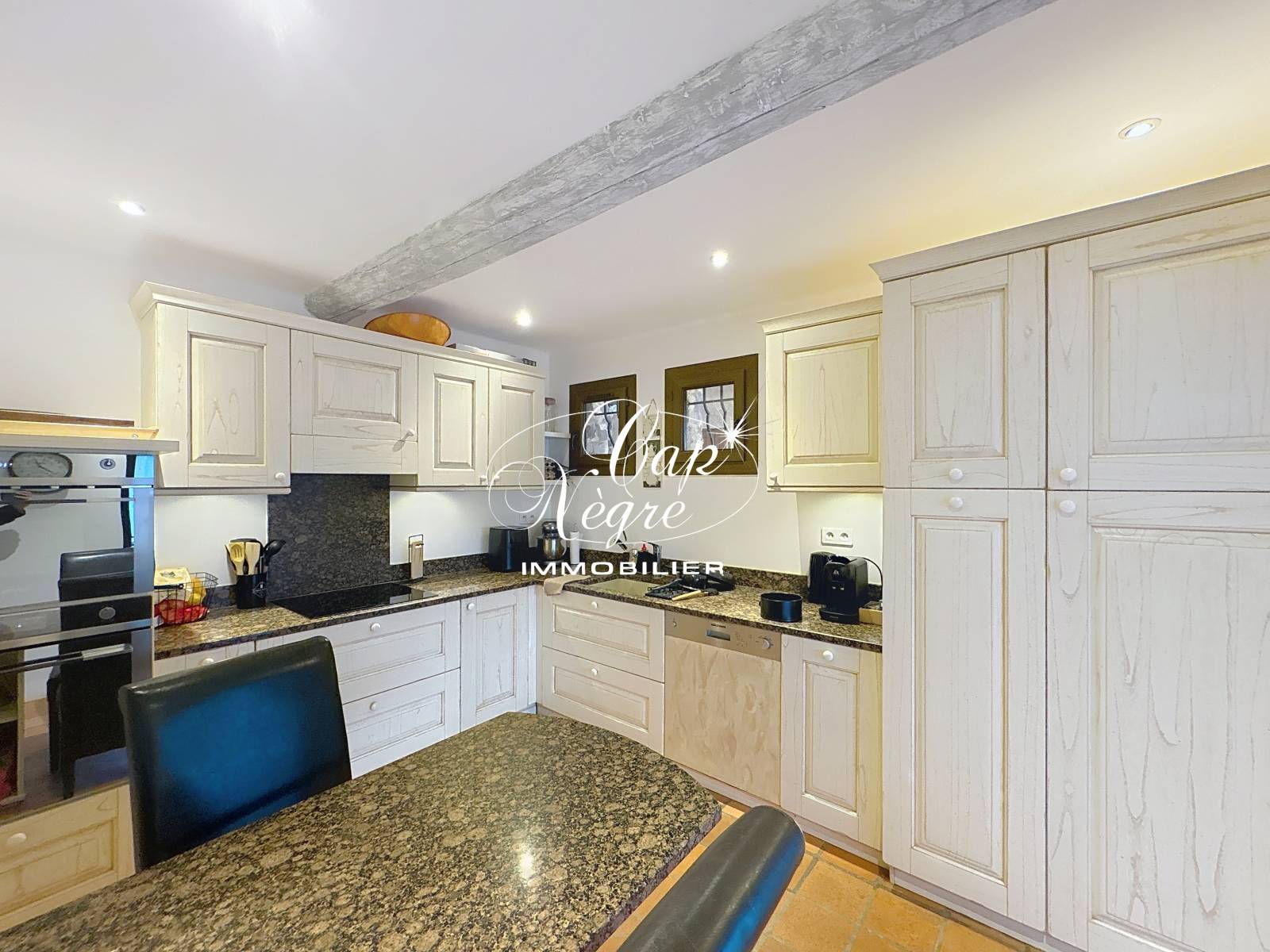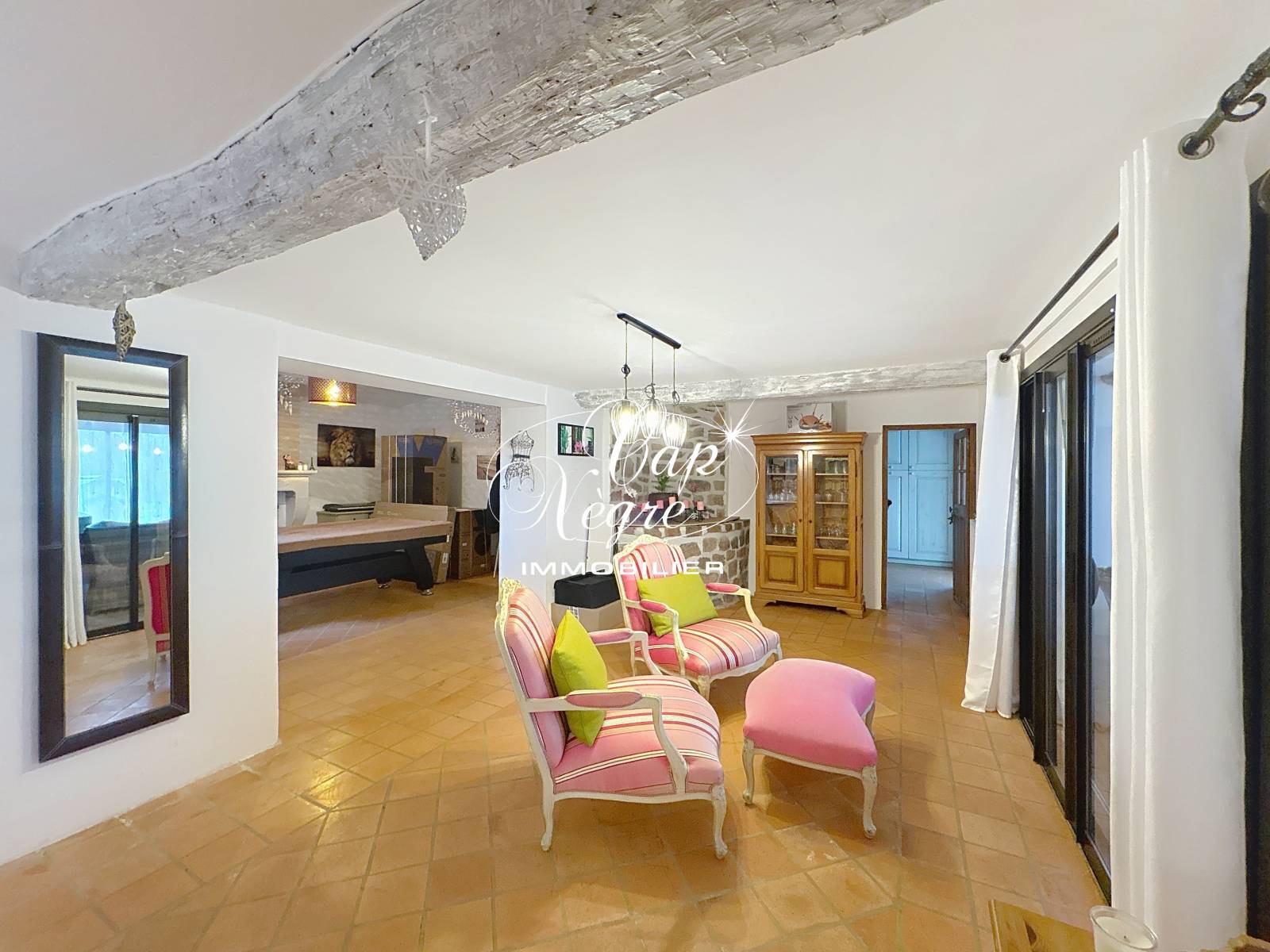 Vendu entièrement meublé, ce bien conjugue charme d’antan et confort moderne grâce à ses équipements performants : climatisation réversible, chauffage à granulés, cheminée avec insert, panneaux solaires et double vitrage intégral, y compris dans le garage. Un forage assure par ailleurs une autonomie en eau.