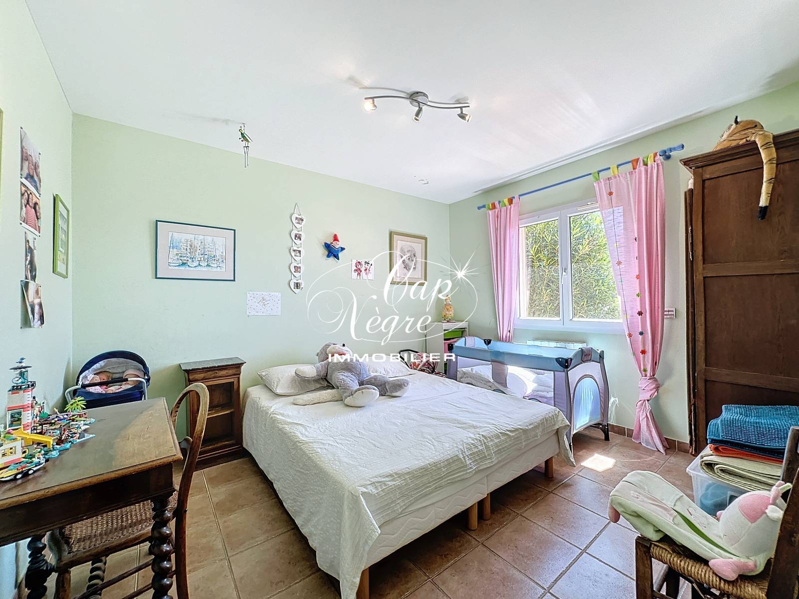 Les volumes généreux de la maison, bien exposée, créent une atmosphère lumineuse et accueillante. Avec une surface habitable de 250 m² dont 50m² pour l’appartement de type 2P, la maison comprend cinq chambres, 1 salle de bains, une salle d'eau et un bureau, offrant un grand confort de vie. Mitoyen à la maison, un appartement de type 2P comprenant séjour avec cuisine ouverte, une chambre avec salle d’eau, le tout donnant sur 2 terrasses dont une avec un olivier de 150 ans.