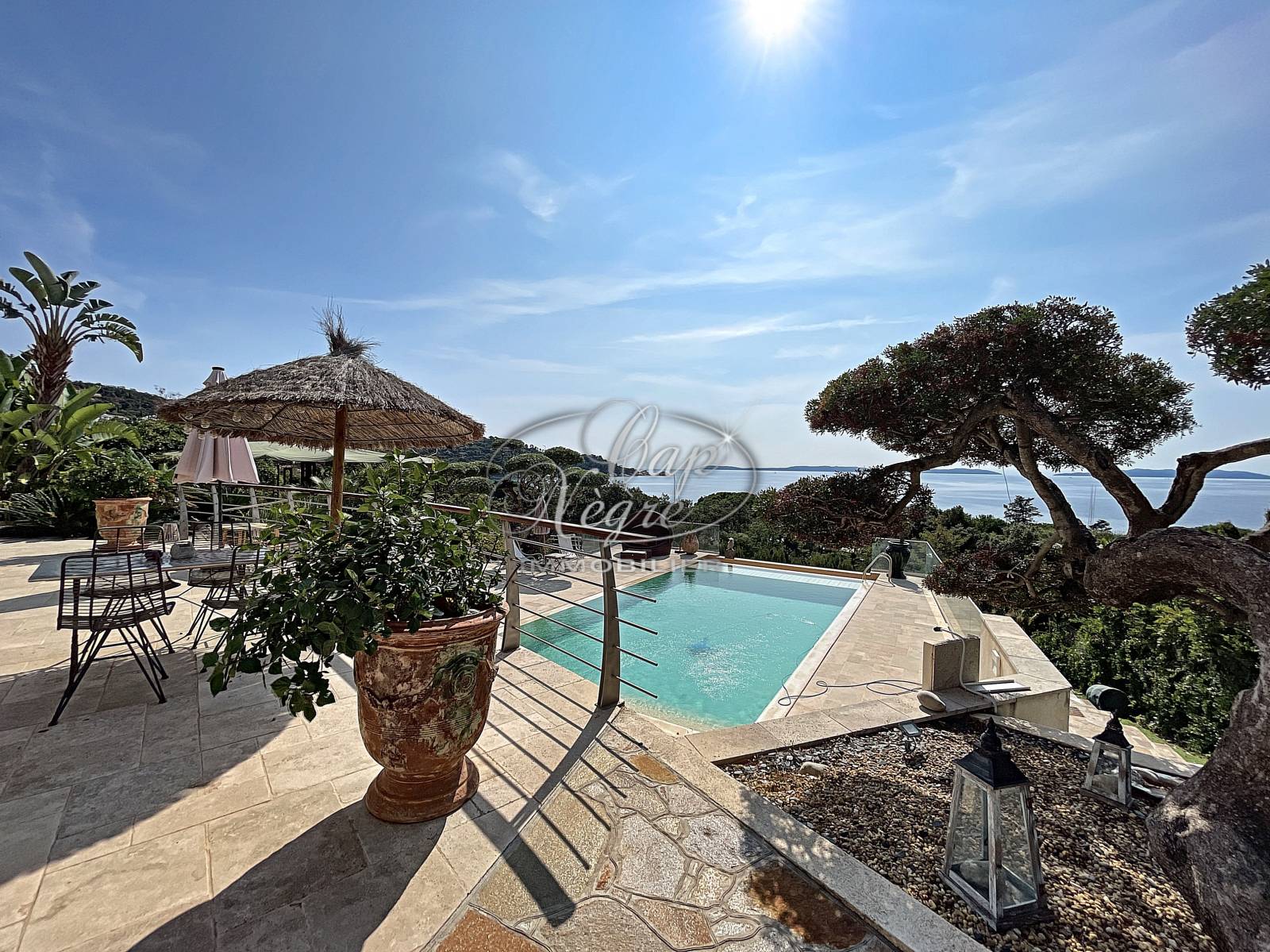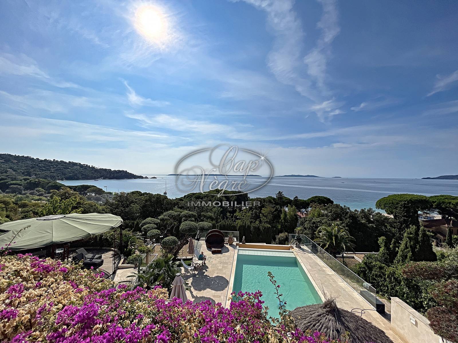 Propriété d’exception, entre le Cap Nègre et Le Layet, bénéficiant d’un emplacement très recherché à 100 m de la plage et d’une vue panoramique sur la mer et les Îles d’Or.