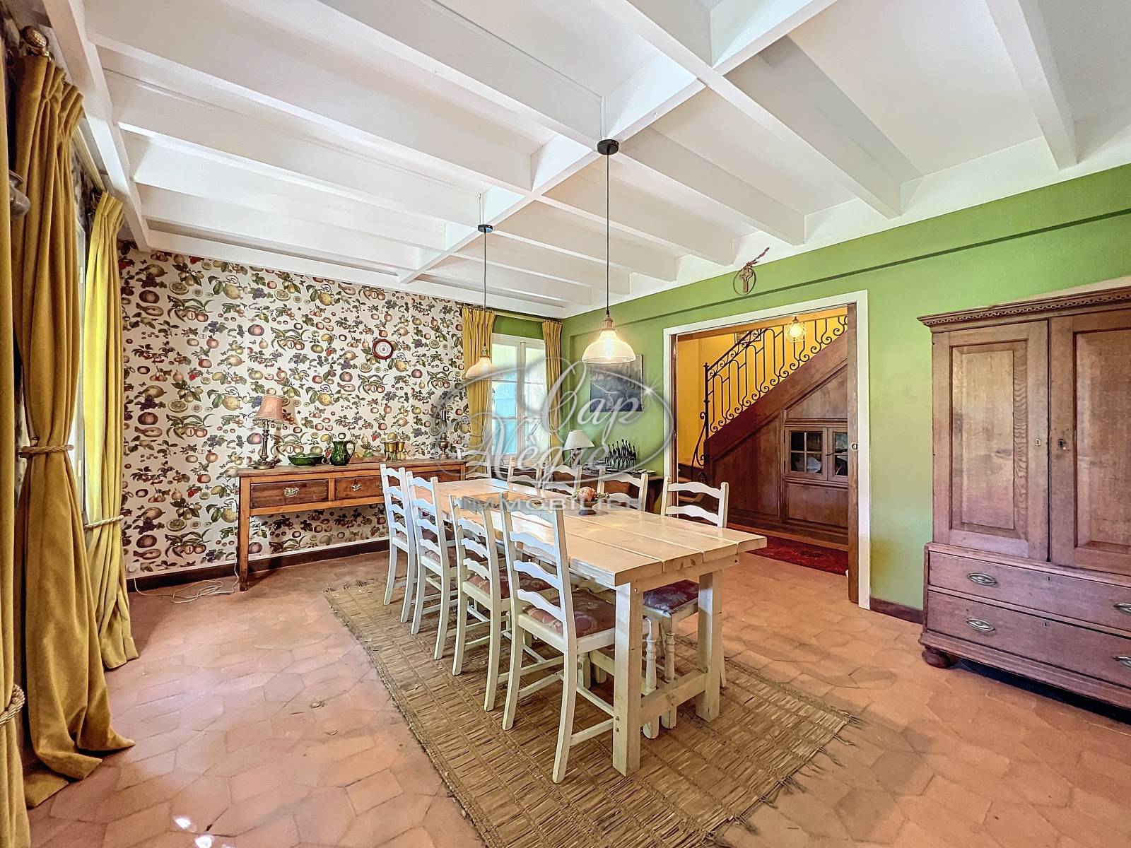 La maison principale, un mas provençal de 298 m², vous transportera dans un univers exceptionnel. Cette habitation comprend un hall d'entrée, un salon avec cheminée, une salle à manger, une cuisine ouvrant sur une terrasse au Sud, 6 chambres dont une suite parentale au niveau principal, 6 salles d'eau, ainsi qu’un bureau et un hammam.