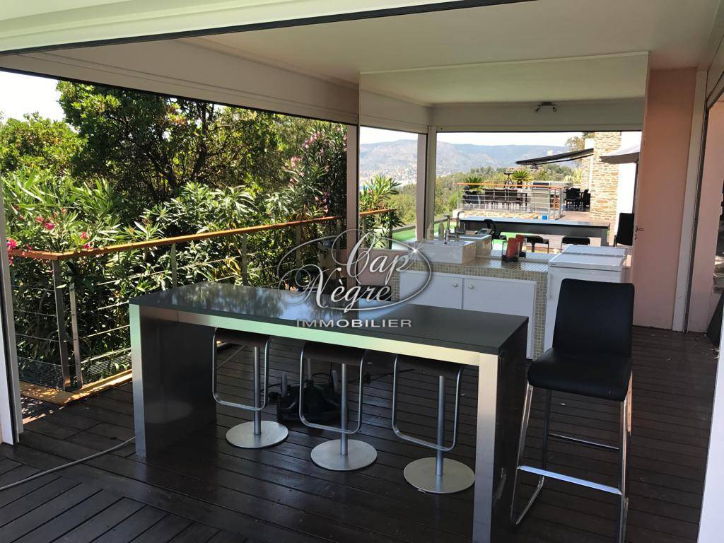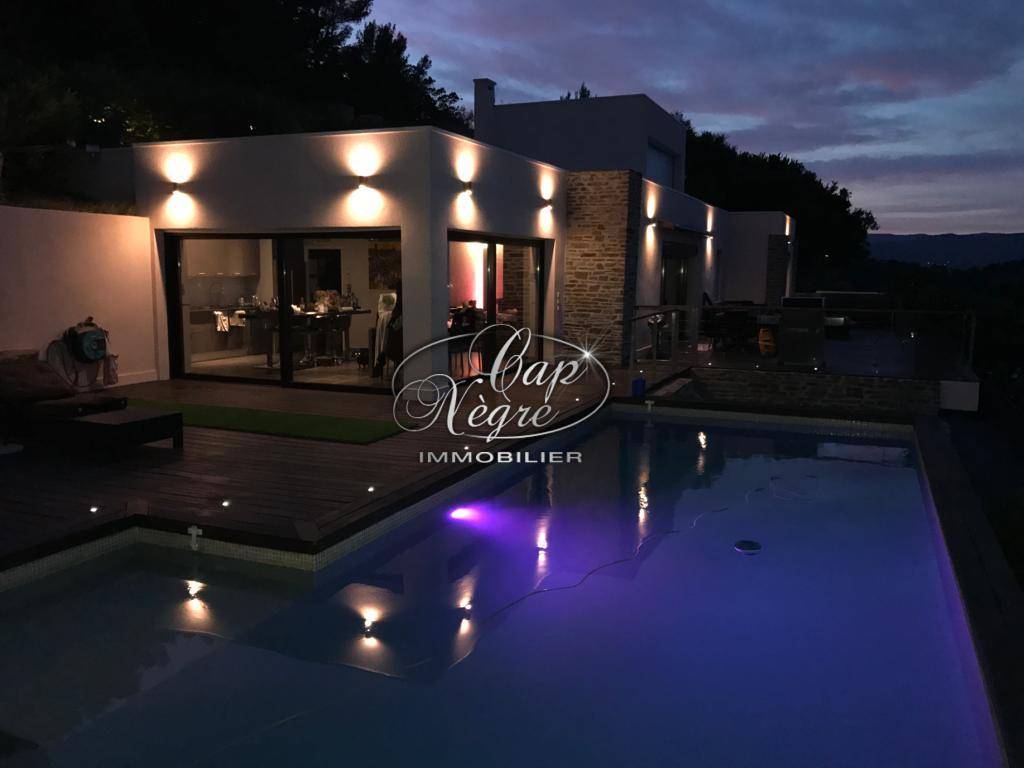 Sur une parcelle de terre de 1750 m², plantée d'essences méditerranéennes, cette magnifique propriété de style contemporain d'environ 230 m² est édifiée sur trois niveaux et sa vue mer panoramique surplombe le Cap Bénat faisant face à l'île du Levant la baie du Lavandou et Le Cap Lardier