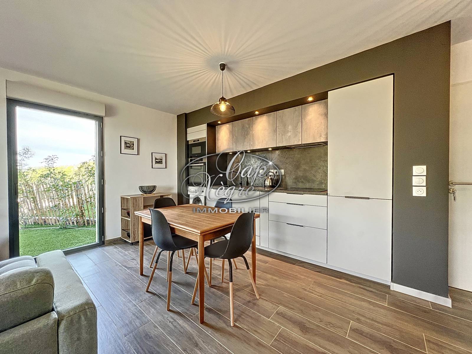 Il s'agit d'un appartement composé d'un séjour lumineux avec une cuisine moderne entièrement équipée, 2 chambres, salle de bains, wc. Climatisation réversible. De plus, il est tout simplement impeccable. C'est un bien neuf, dans un état irréprochable, clé en main et entièrement meublé.