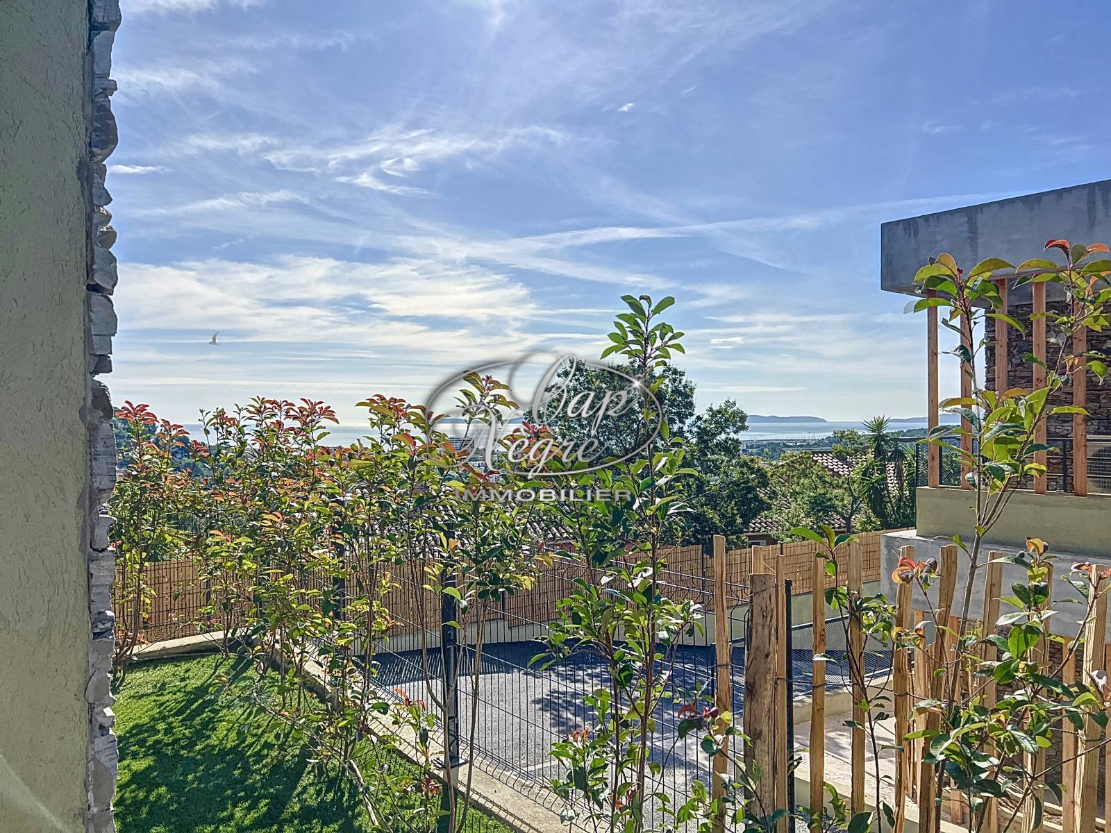 Grande terrasse avec jardin offrant une magnifique vue sur la mer, vous laissant la sensation d'être isolé dans un coin de nature préservé.