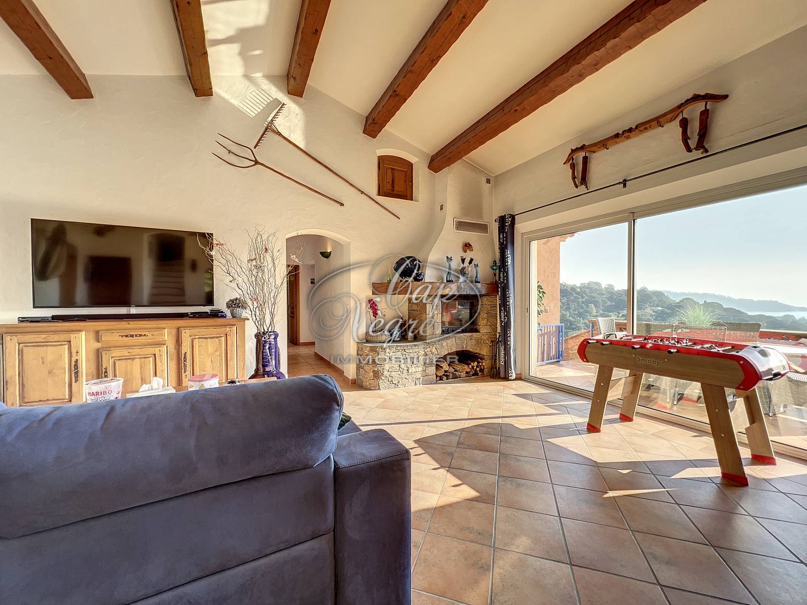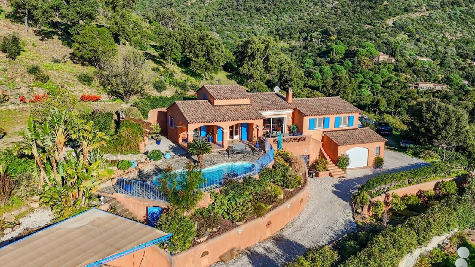 Propriété d'architecte située sur les hauteurs de Cavalière avec une très belle vue sur la mer. Exposée sud, très ensoleillée et lumineuse. L''environnement est de qualité et peu construit.