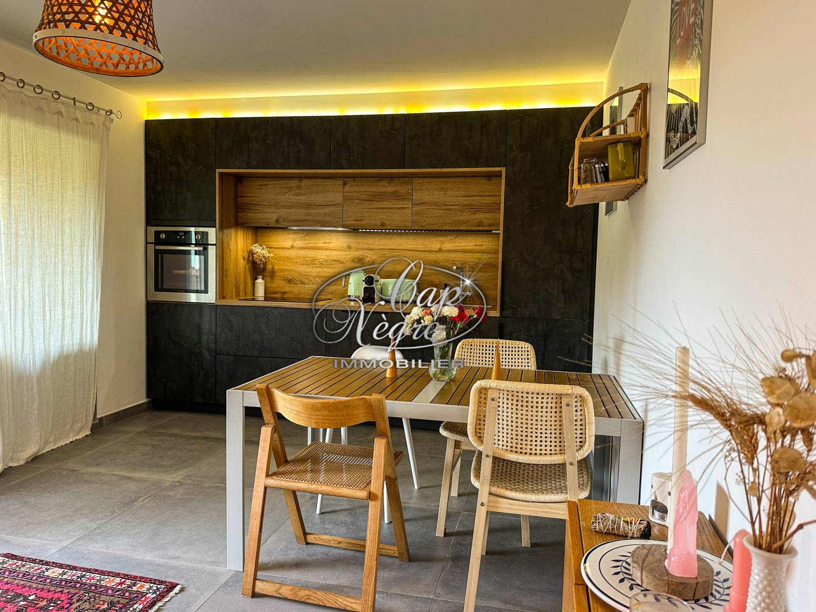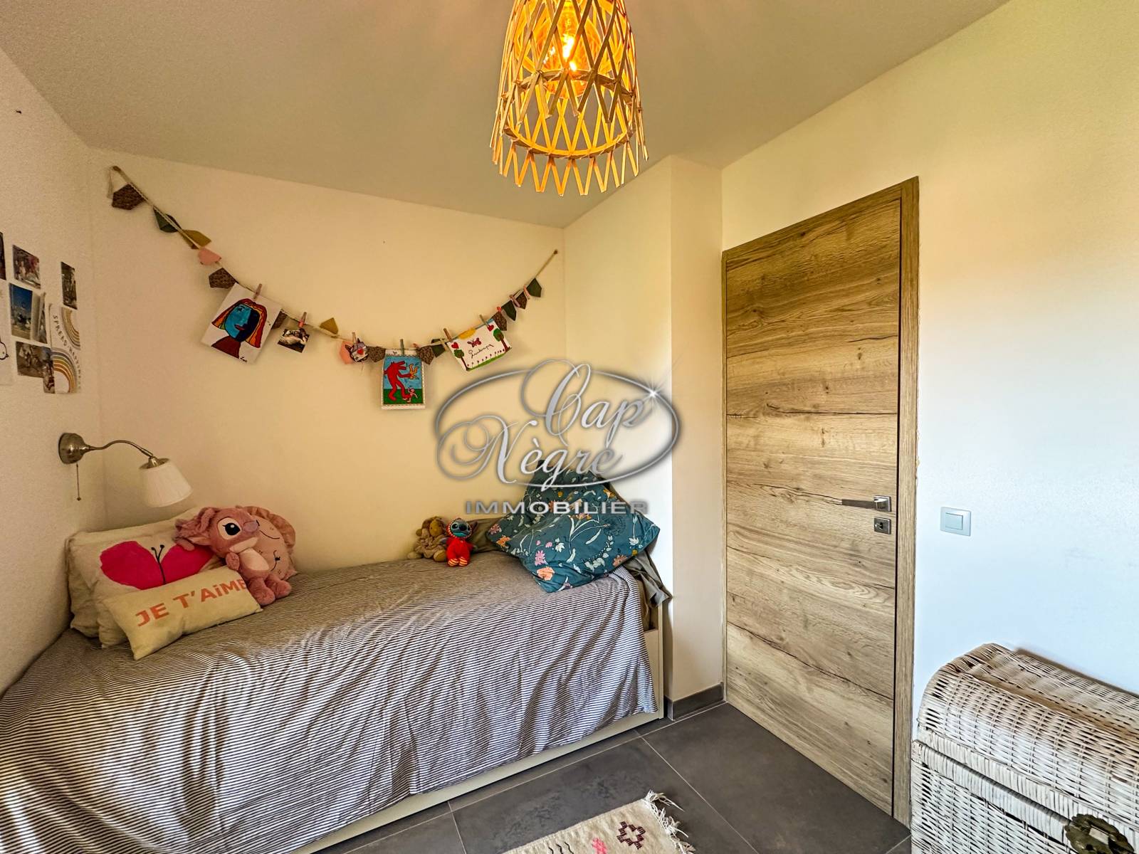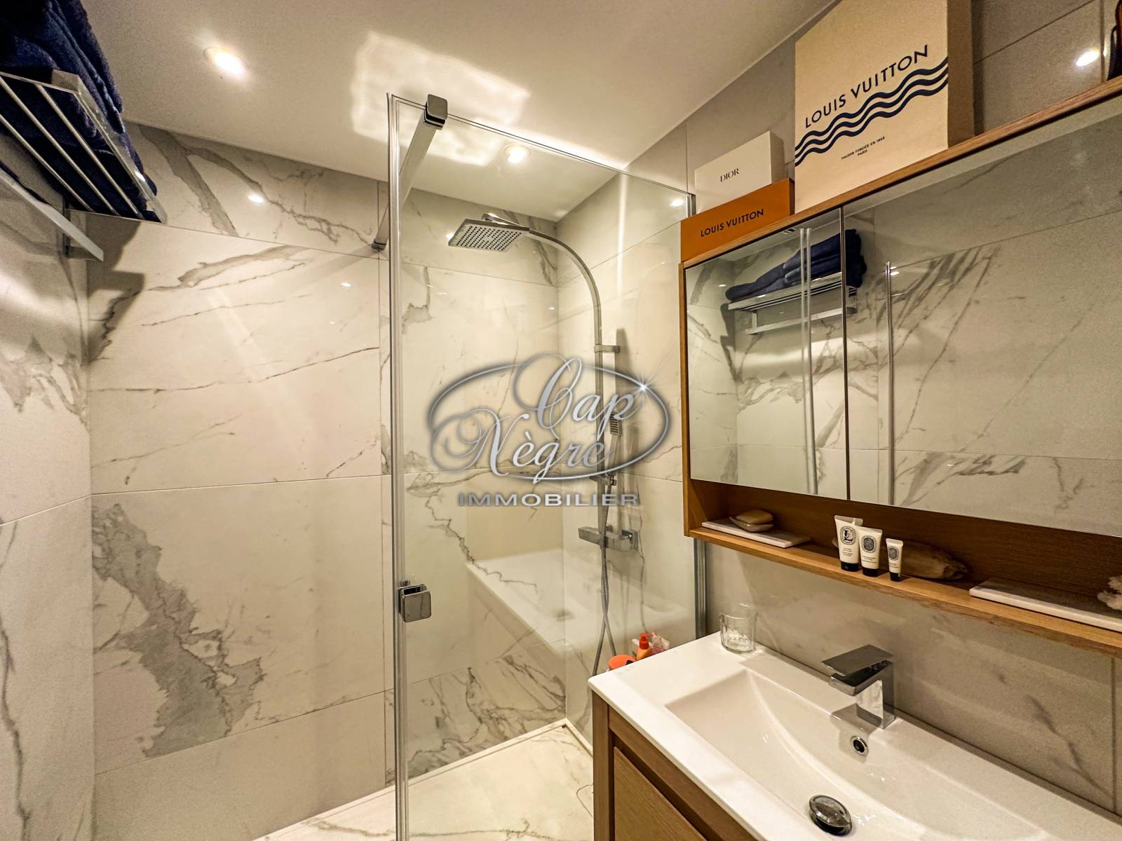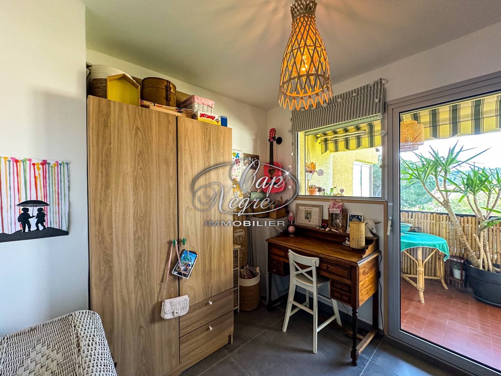 Les caractéristiques principales de cette propriété comprennent un séjour lumineux avec cuisine intégrée, s'ouvrant sur une terrasse ensoleillée de 18m2 orientée plein Sud, idéale pour profiter des douces journées méditerranéennes. Deux chambres spacieuses de 9m2 avec dressing, ainsi qu'une troisième chambre ou bureau de 8m2 avec accès direct à la terrasse, offrent un espace de vie fonctionnel et confortable. De plus, l'appartement dispose d'une entrée avec couloir et placard de rangement, un WC avec fenêtre, une salle d’eau avec douche à l’italienne moderne et une porte blindée assurant la sécurité et la tranquillité des occupants.