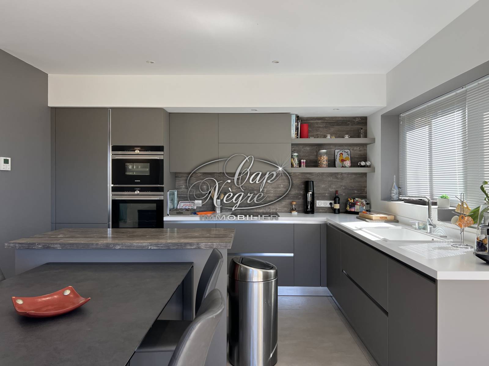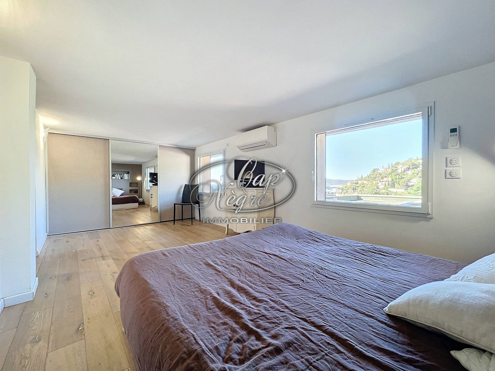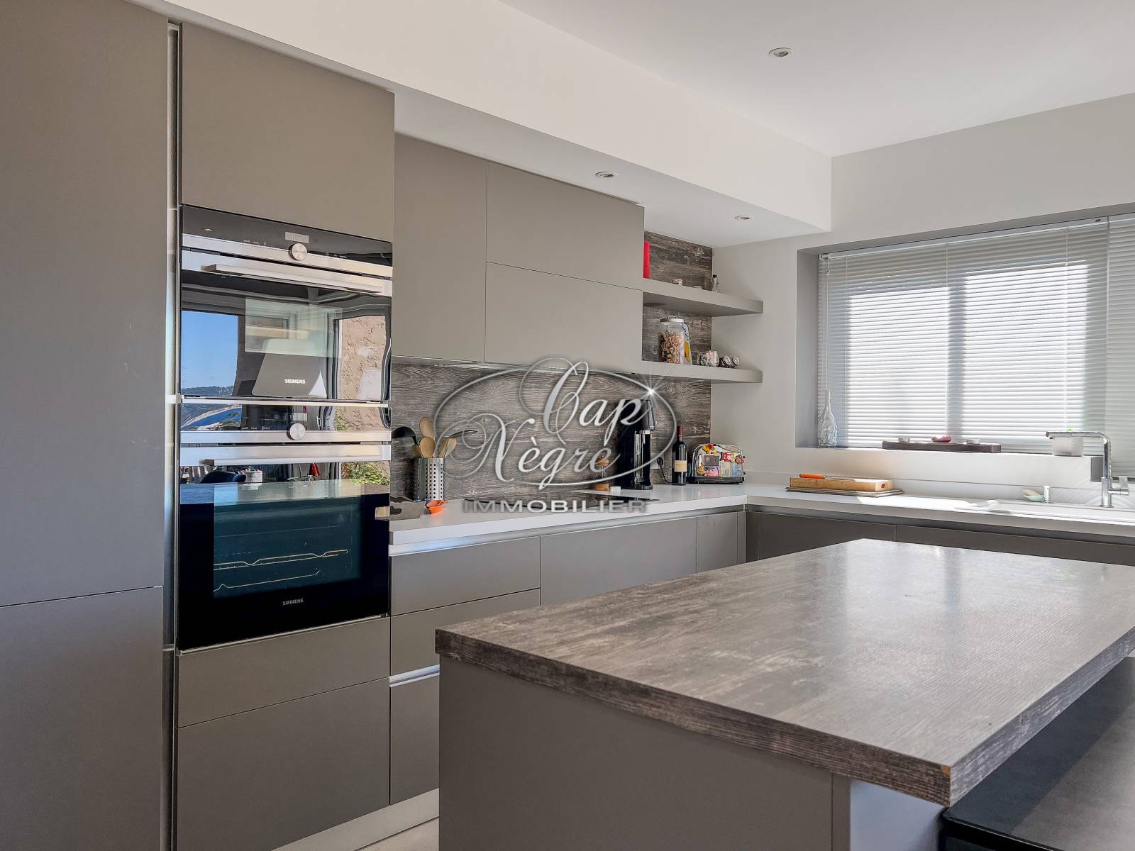 Les grandes baies vitrées permettent à la lumière naturelle de baigner l'intérieur et offrent un accès direct à la terrasse extérieure. Aménagée avec soin, cette terrasse de 36 m², est un véritable havre de paix où vous pourrez vous détendre en admirant la sublime vue sur la mer.