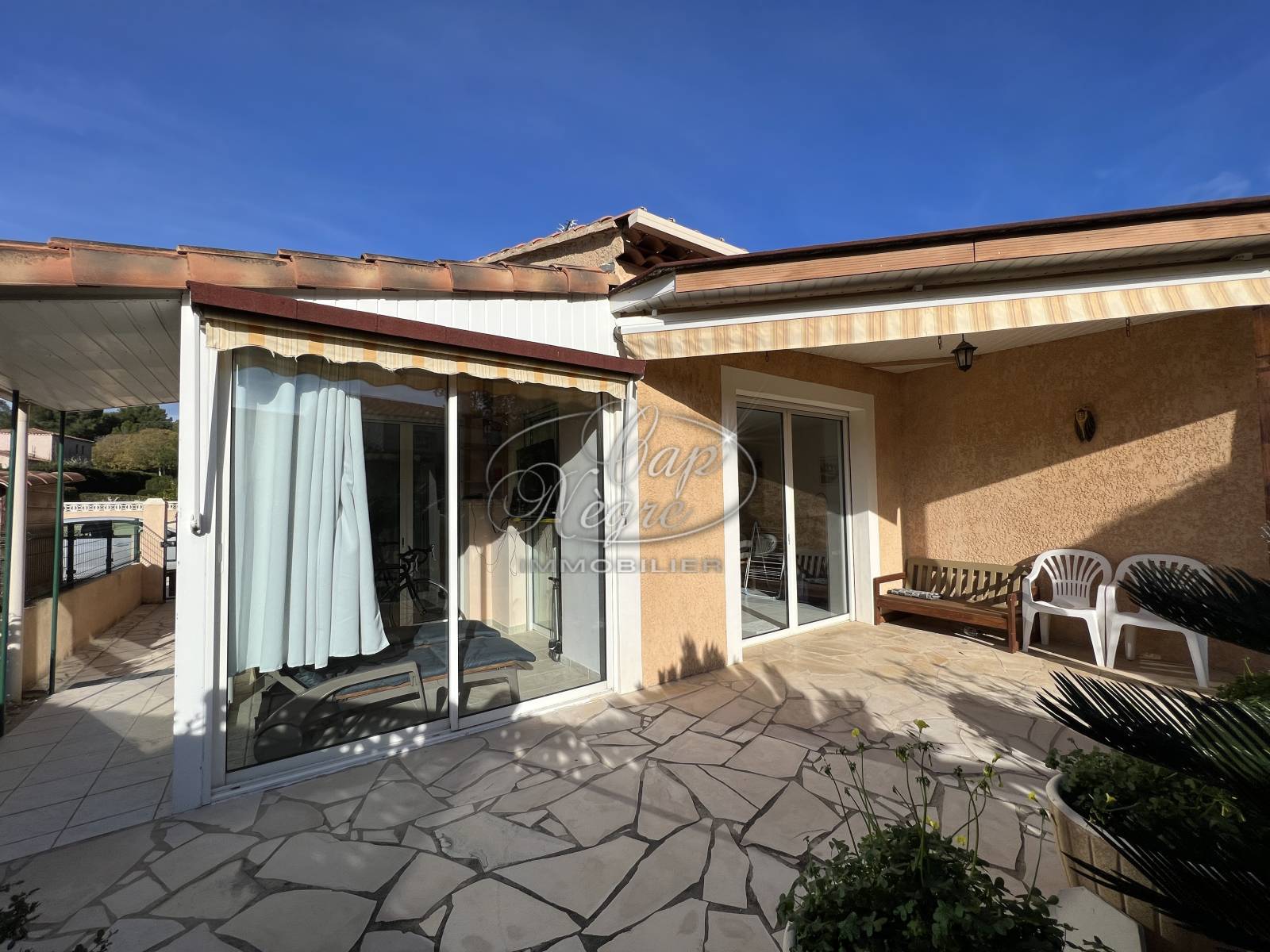 Nous vous proposons à la vente cette maison de plain-pied à La Favière, à seulement quelques pas de la plage. La cuisine ouverte sur le séjour offre un espace convivial, s'ouvrant sur l'extérieur et une loggia. La chambre principale en suite dispose de sa salle d'eau privative.