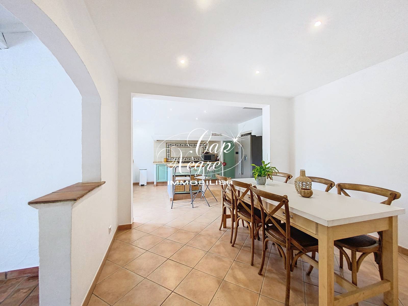La maison se compose de 6 pièces, dont 5 chambres spacieuses incluant une suite parentale. Les pièces sont lumineuses et décorées avec goût, avec des matériaux de bonne qualité. Les espaces de vie sont chaleureux et accueillants, et disposent de beaux espaces avec poutres apparentes ajoutant du charme à la bâtisse. Une climatisation réversible par étage assure un confort optimal en toute saison.