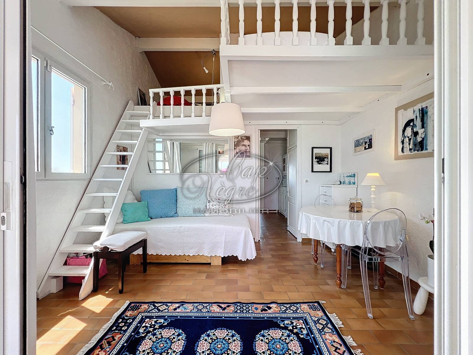 Une mezzanine utilisée pour chambre et rangement.