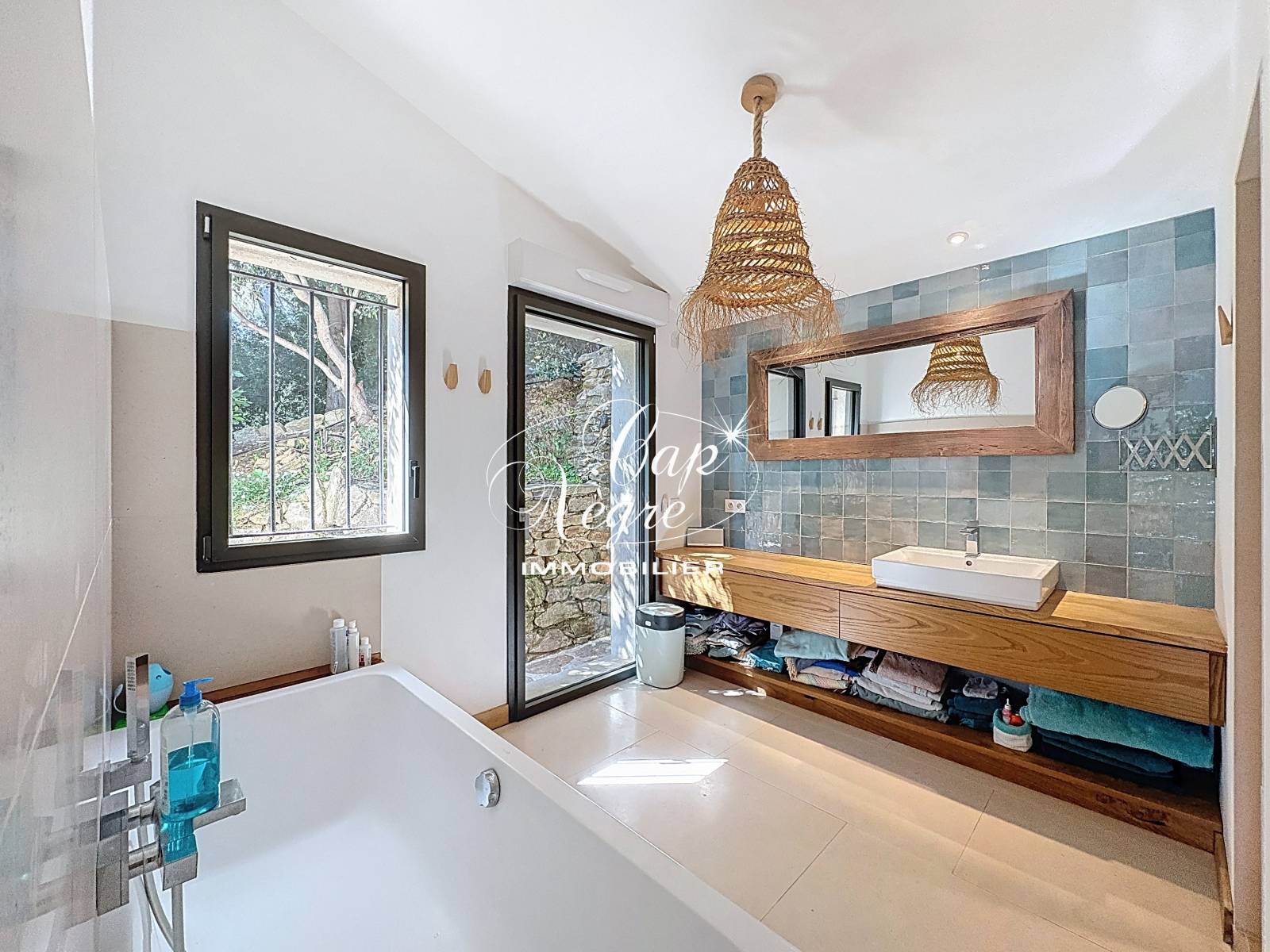 Située à seulement 200 mètres de la plage d’Aiguebelle, cette magnifique propriété de 122.42m² offre un cadre de vie privilégié dans un environnement calme et verdoyant. Édifiée sur un terrain en restanque soigneusement entretenu, elle bénéficie d’un bel aperçu sur la mer et d’espaces extérieurs particulièrement agréables.