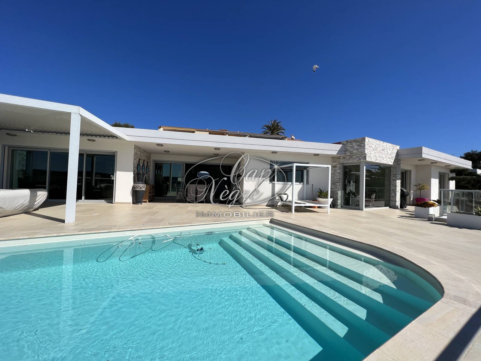 Propriété contemporaine disposant d'une magnifique vue sur la mer de toutes les pièces. Prestations de qualité.