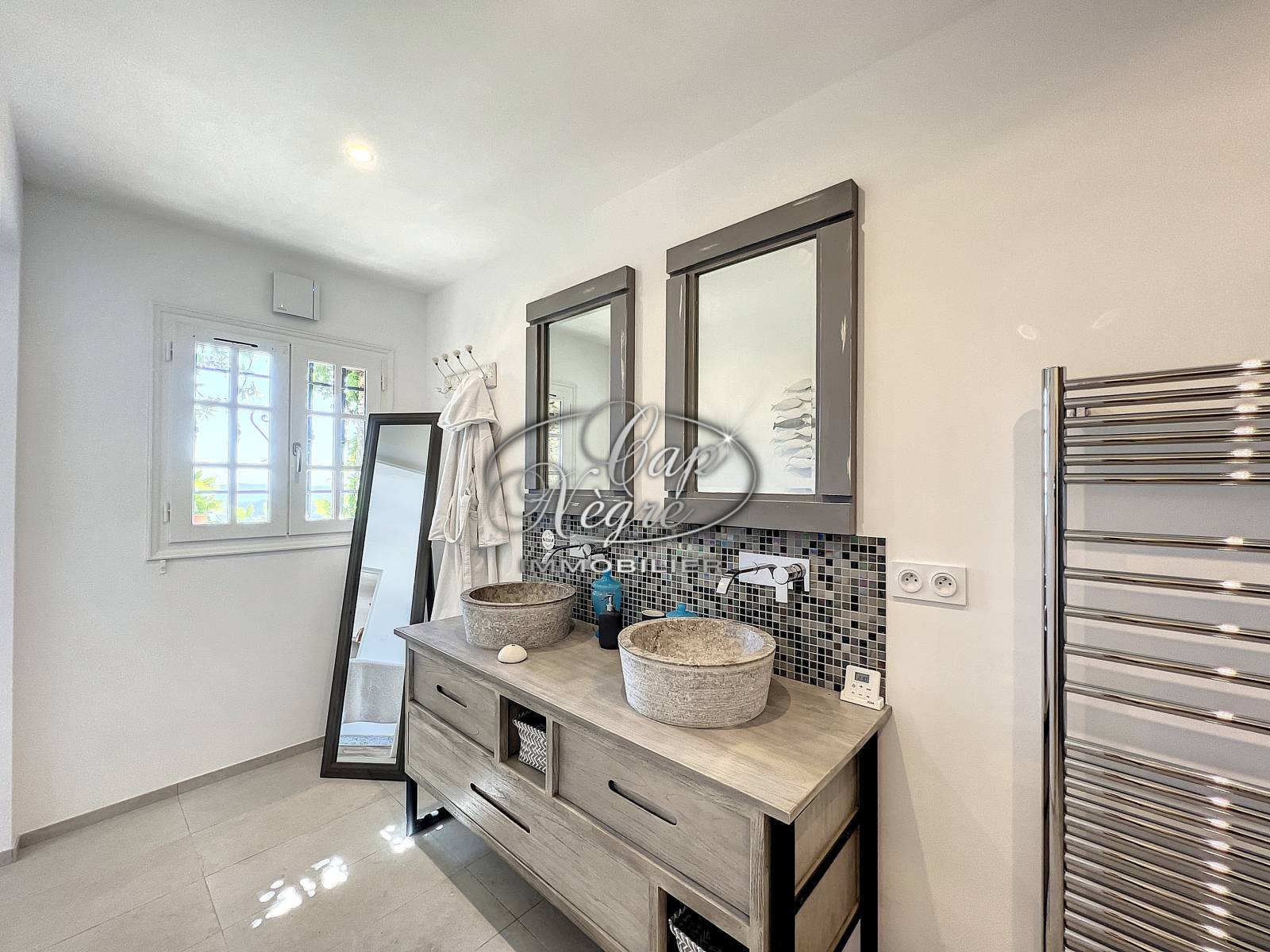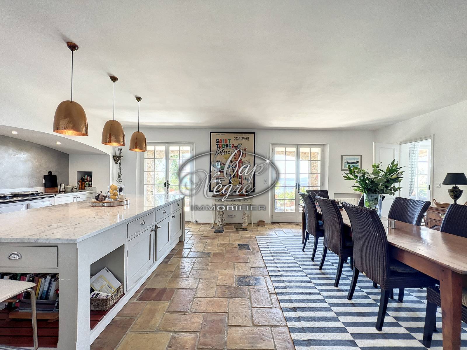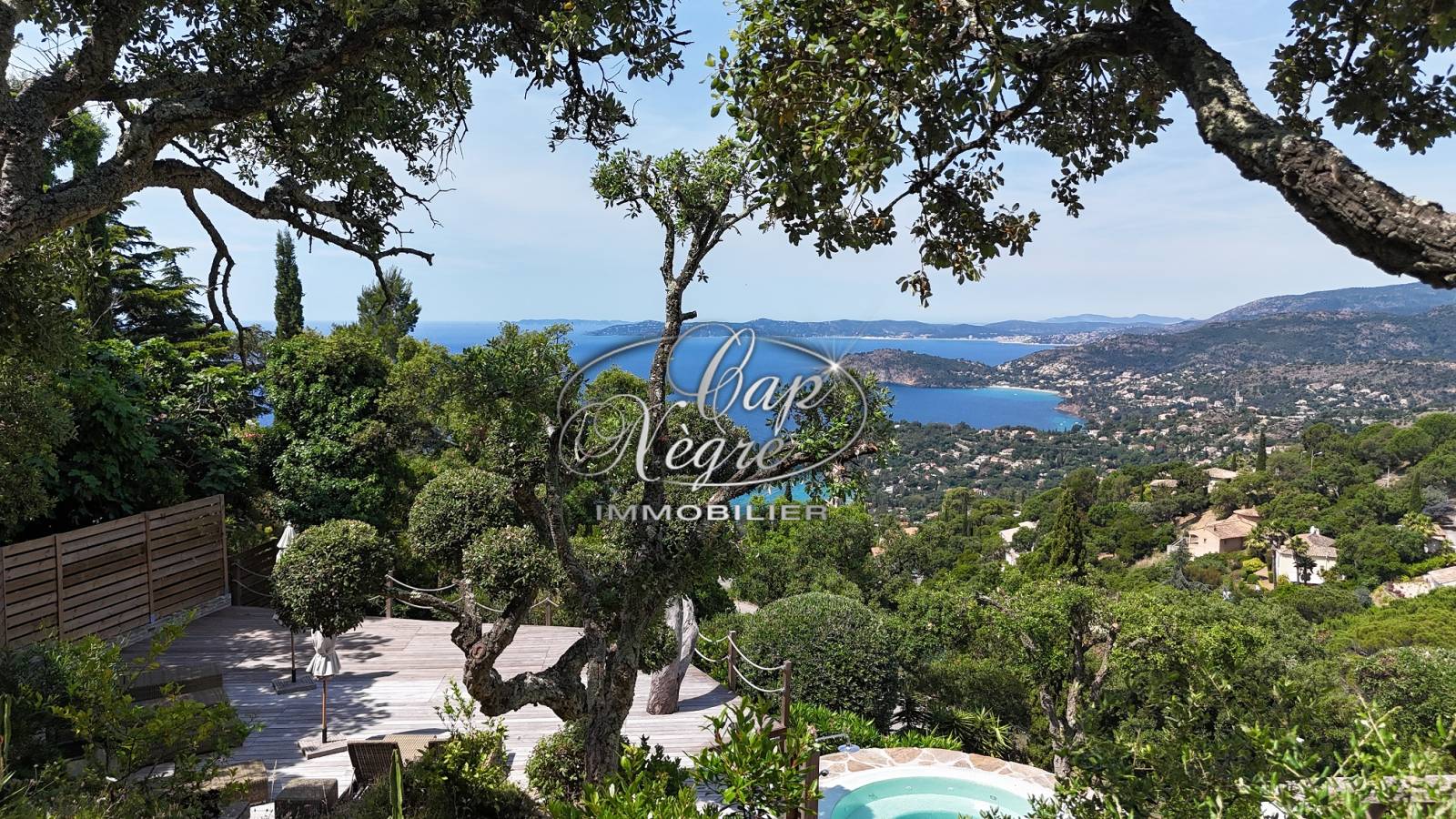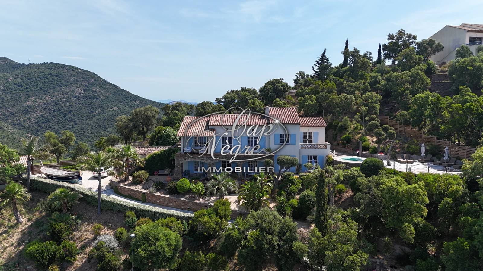 Cette propriété, des années 70, a été soumise à des rénovations majeures tout en préservant son charme originel. D’ici, nous sommes captivés par une vue panoramique sur la mer, les îles et le Cap Nègre.