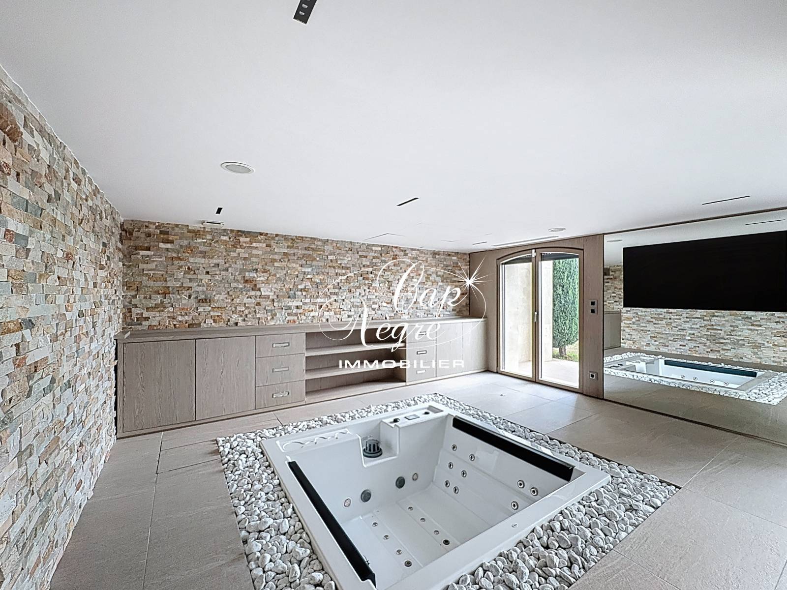 La propriété dispose également d’un remarquable espace bien-être, comprenant une salle de sport entièrement équipée, un hammam, un sauna ainsi qu’un jacuzzi intérieur ouvrant sur le jardin. Deux indépendances offrent des espaces de vie supplémentaires.