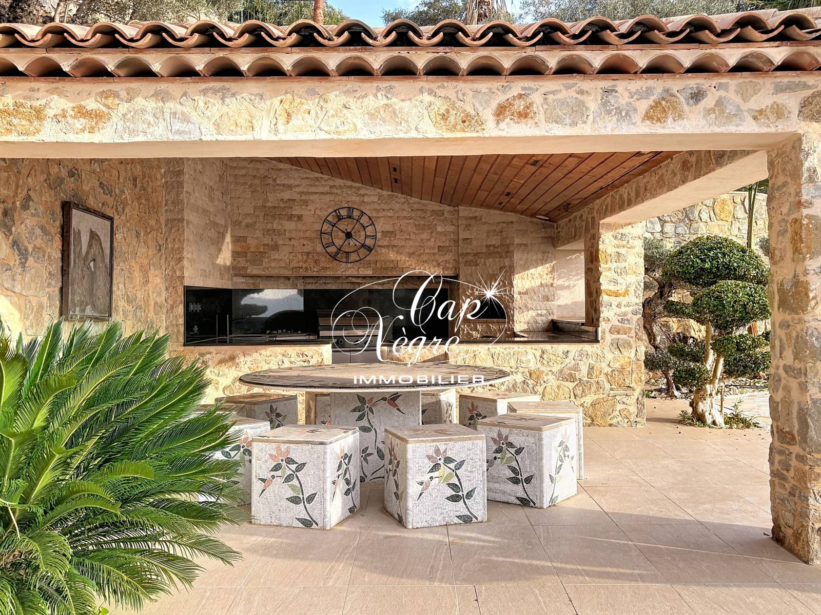 Édifiée sur un terrain arboré et magnifiquement entretenu de 1,07 hectare, la villa se distingue par une architecture harmonieuse et traditionnelle provençale, mêlant volumes généreux, matériaux nobles et finitions d’un raffinement rare. Les espaces de réception, vastes et ouverts, s’articulent autour d’un lumineux salon avec cheminée, d’une élégante salle à manger et d’une cuisine entièrement équipée, s’ouvrant sur de larges terrasses face à la mer. Dans le prolongement, un espace extérieur d’exception accueille une cuisine d’été, un salon ombragé et une superbe piscine à débordement, véritable miroir sur la Méditerranée.