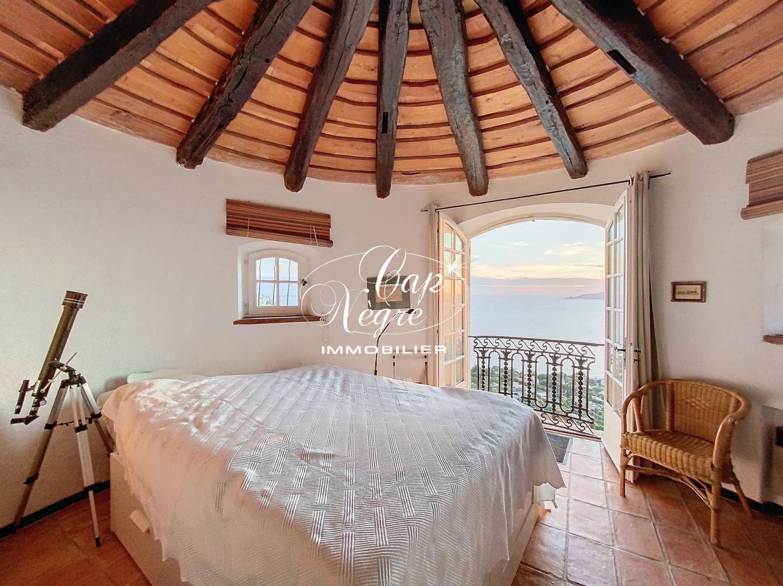 une chambre dominante dans la tour, offrant une vue mer exceptionnelle et panoramique sur tout le littoral.