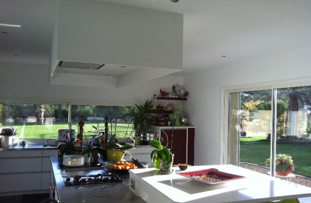 La maison se développe sur trois parties reliées au rez-de-chaussée. Elle dispose d'une entrée principale éclairée par un dôme en verre, un vaste double séjour suivie d'une cuisine aménagée haut de gamme, 4 chambres, une salle de bain, 4 salles d'eau, un bureau.