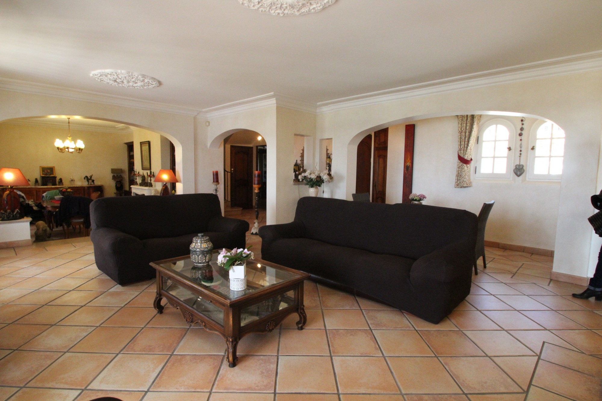 - A l'étage : chambre II avec sa salle de bains, chambre III, chambre IV, salle de bains avec WC. Superbe terrasse avec pergola de plain-pied et en partie couverte à l'étage, sous arcades.