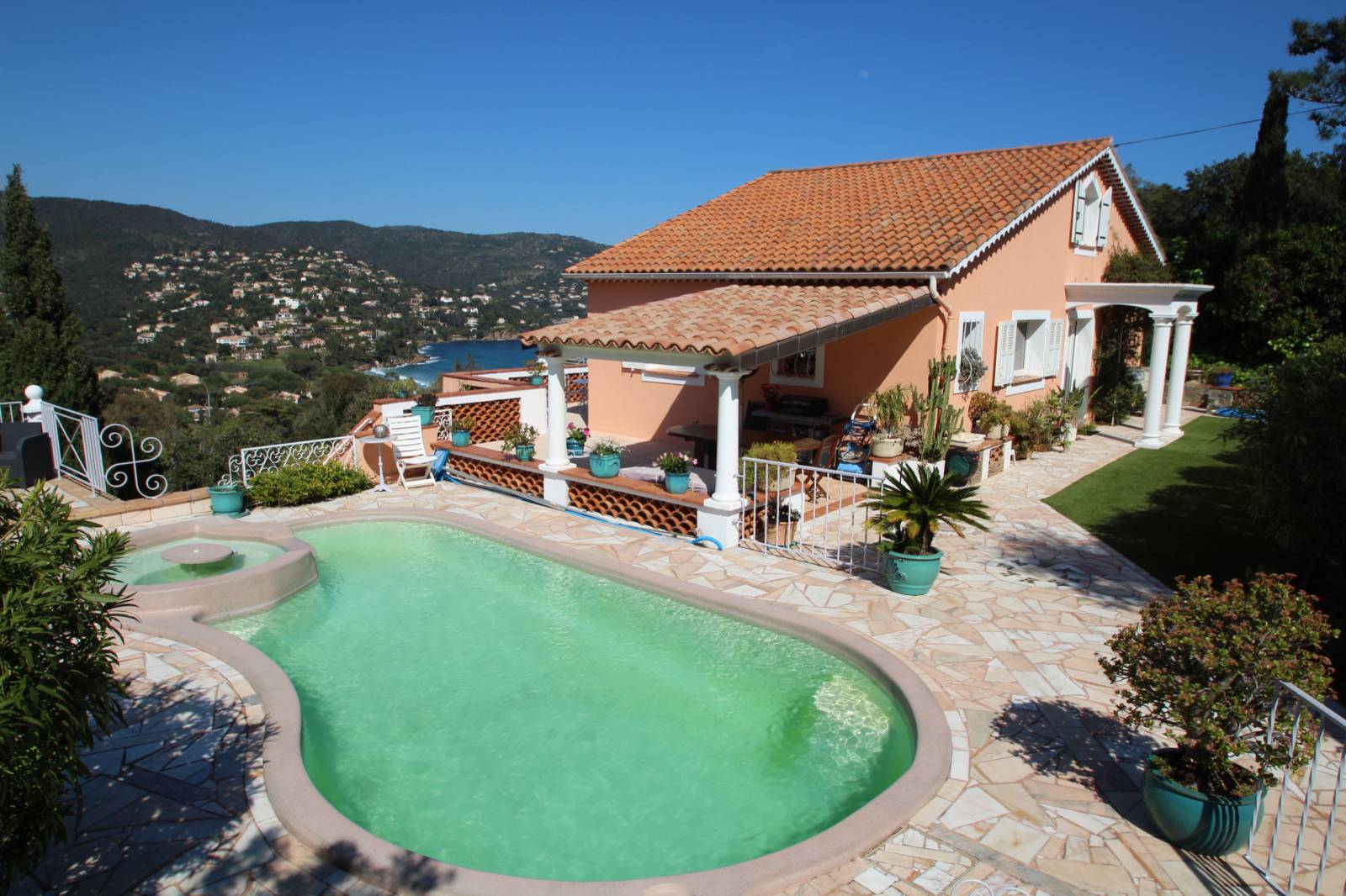 Située à quelques pas de la plage de Pramousquier, cette villa avec vue mer et piscine chauffée a été édifiée au début des années 60 sur un terrain joliment arboré de 1464 m².