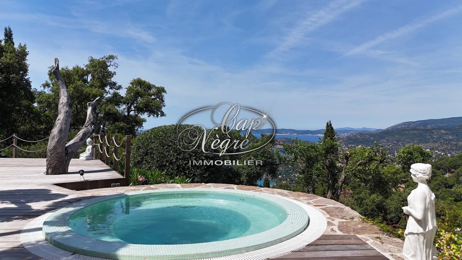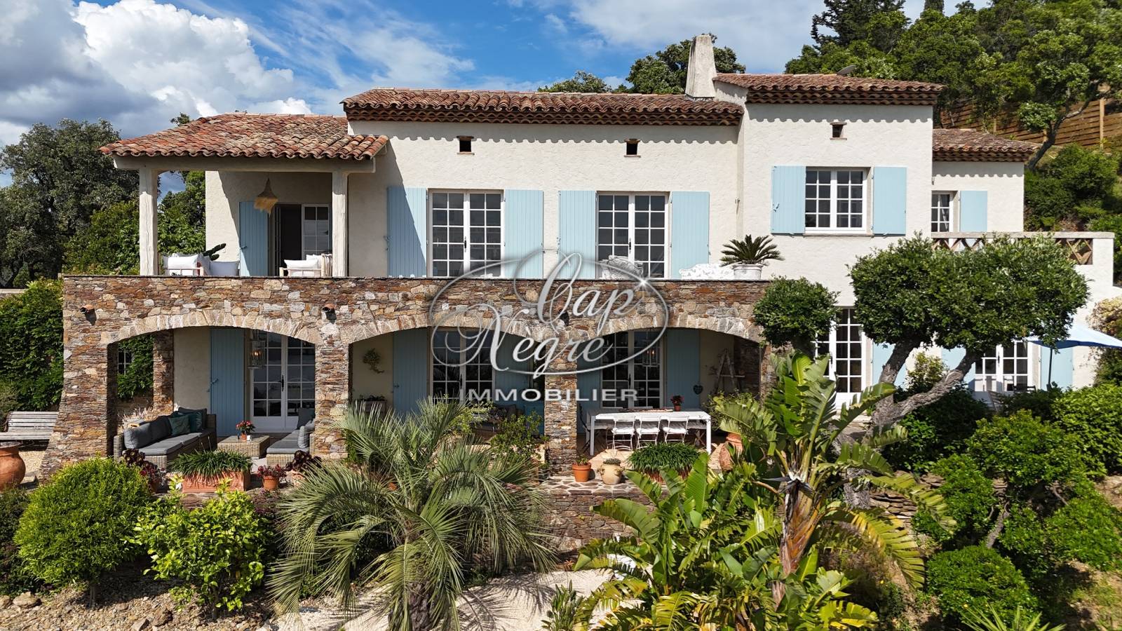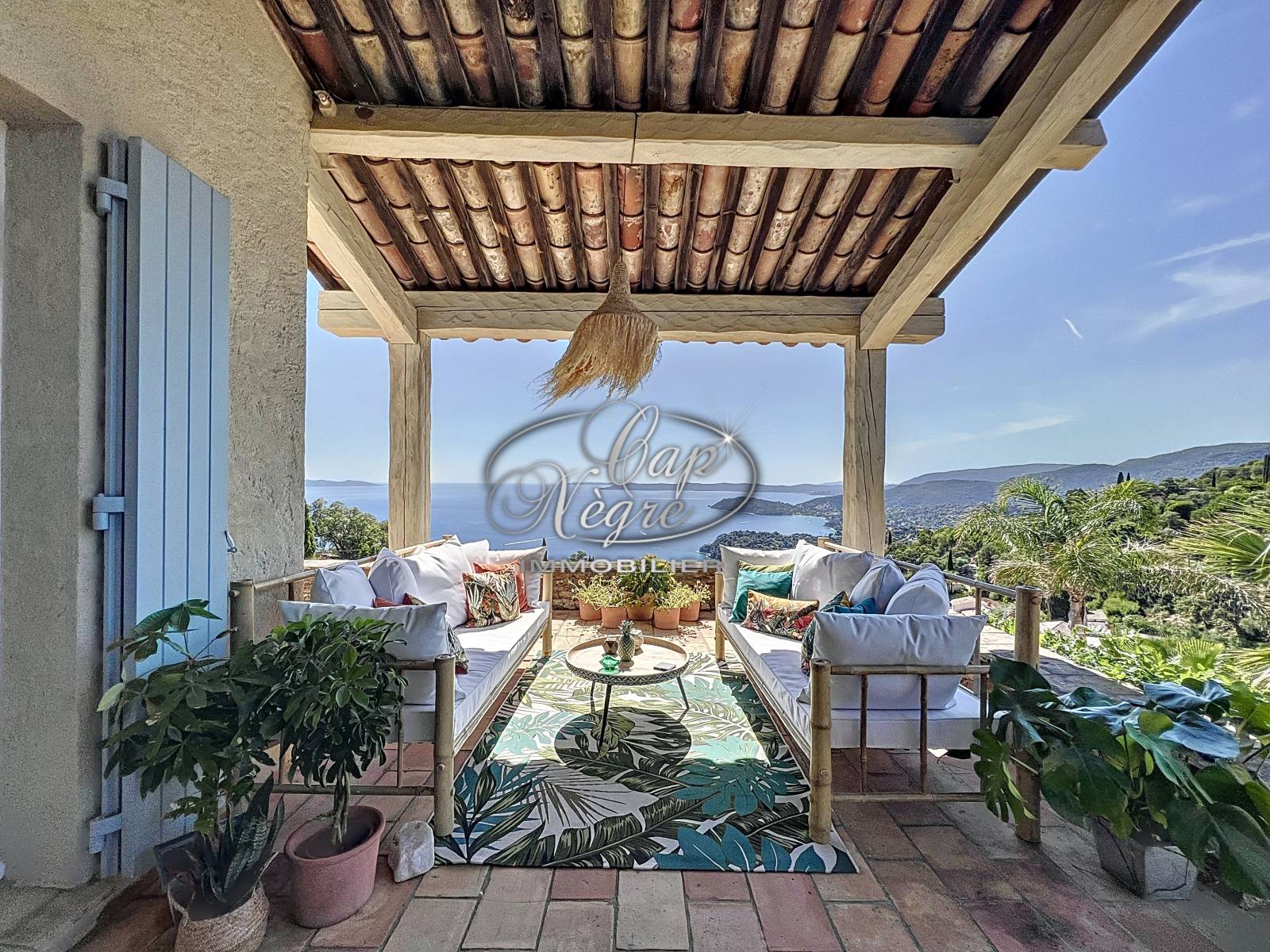 Cette propriété, des années 70, a été soumise à des rénovations majeures tout en préservant son charme originel. D’ici, nous sommes captivés par une vue panoramique sur la mer, les îles et le Cap Nègre.
