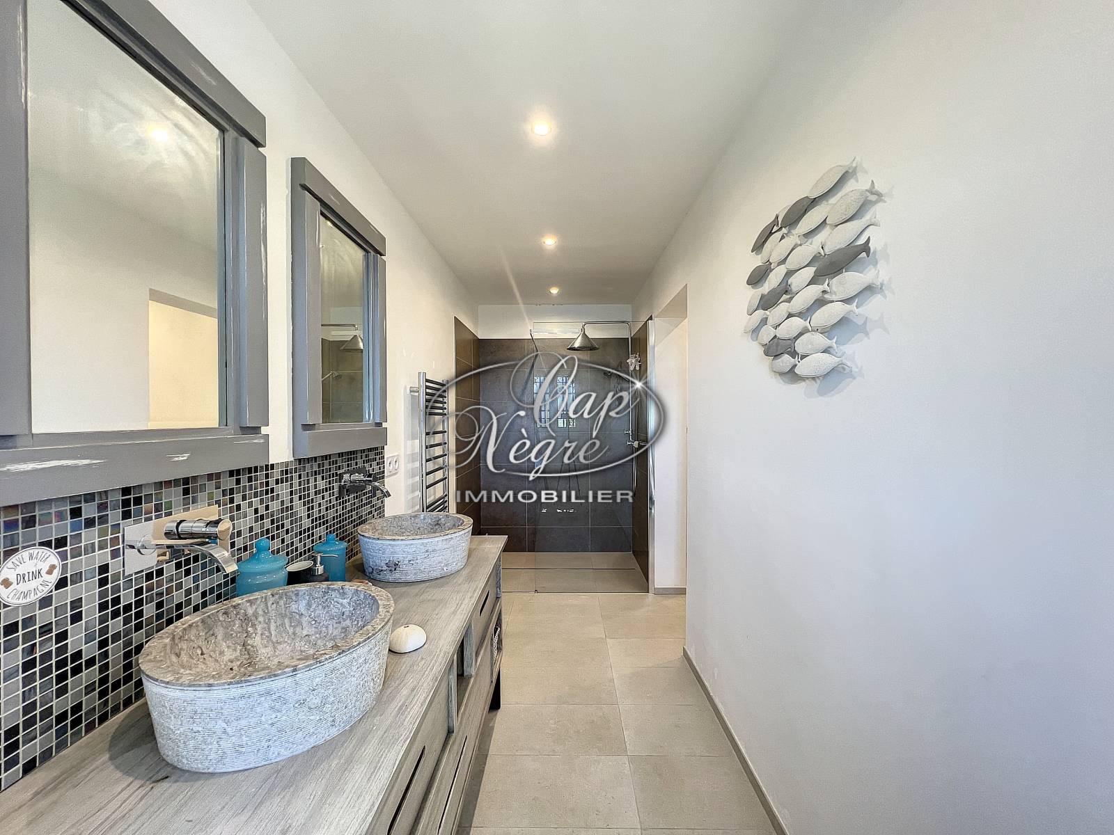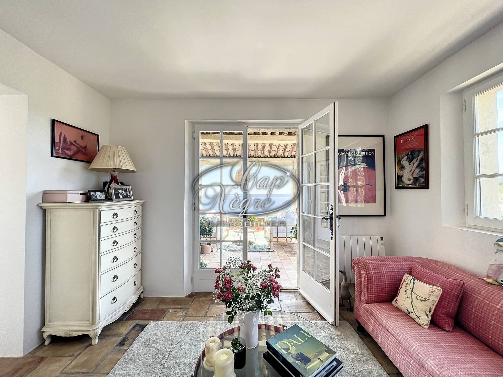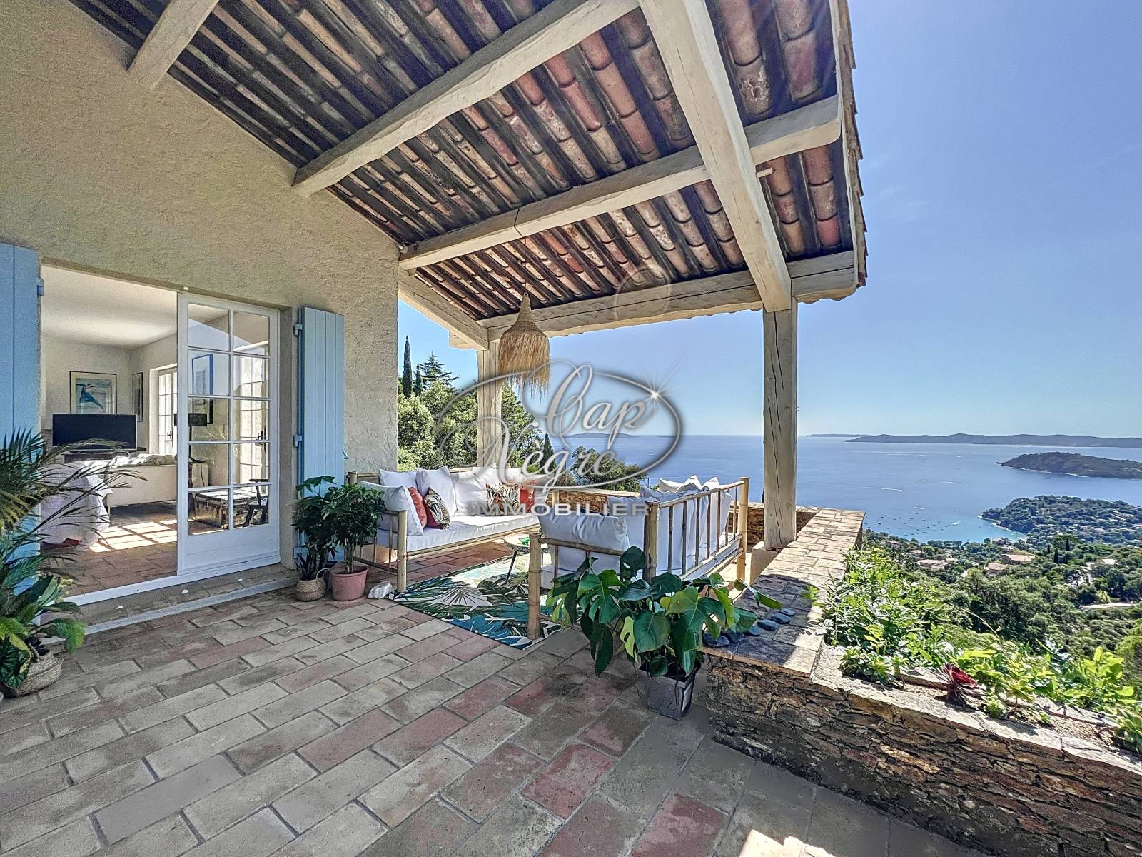 Cette propriété, des années 70, a été soumise à des rénovations majeures tout en préservant son charme originel. D’ici, nous sommes captivés par une vue panoramique sur la mer, les îles et le Cap Nègre.