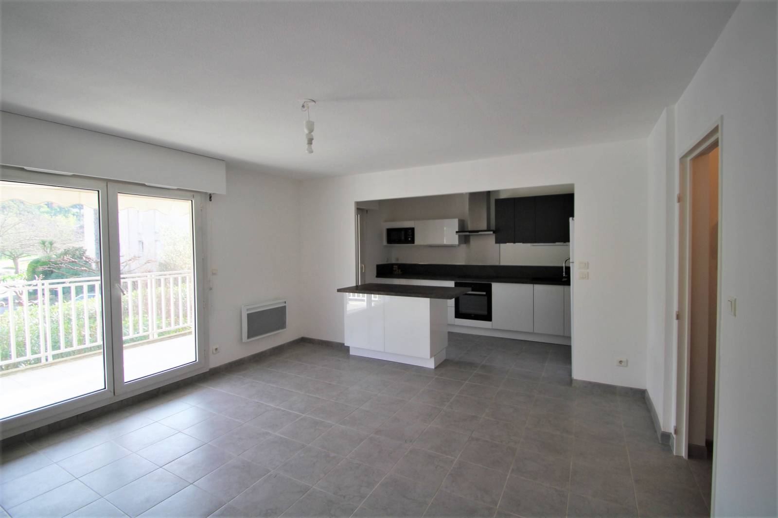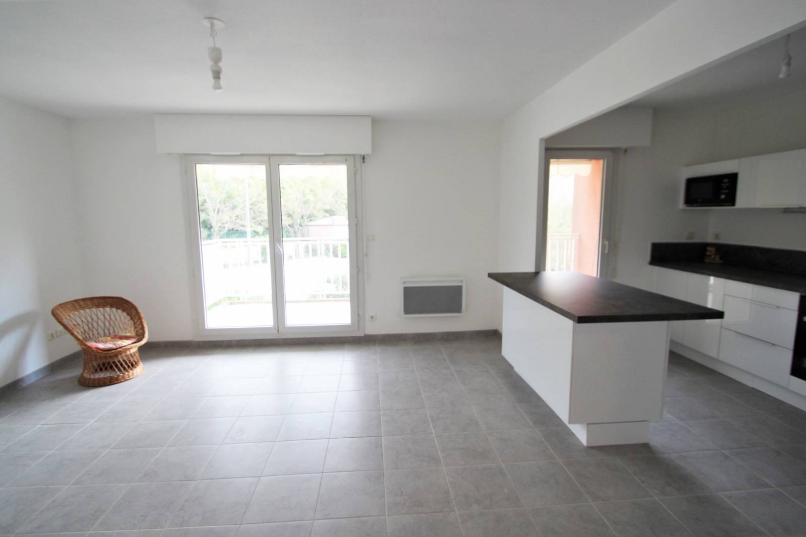 - une entrée avec penderie, spacieux séjour et cuisine entièrement équipée et aménagée donnant sur un grand balcon, 3 chambres, salle de bains, WC séparés, rangement et dégagement.