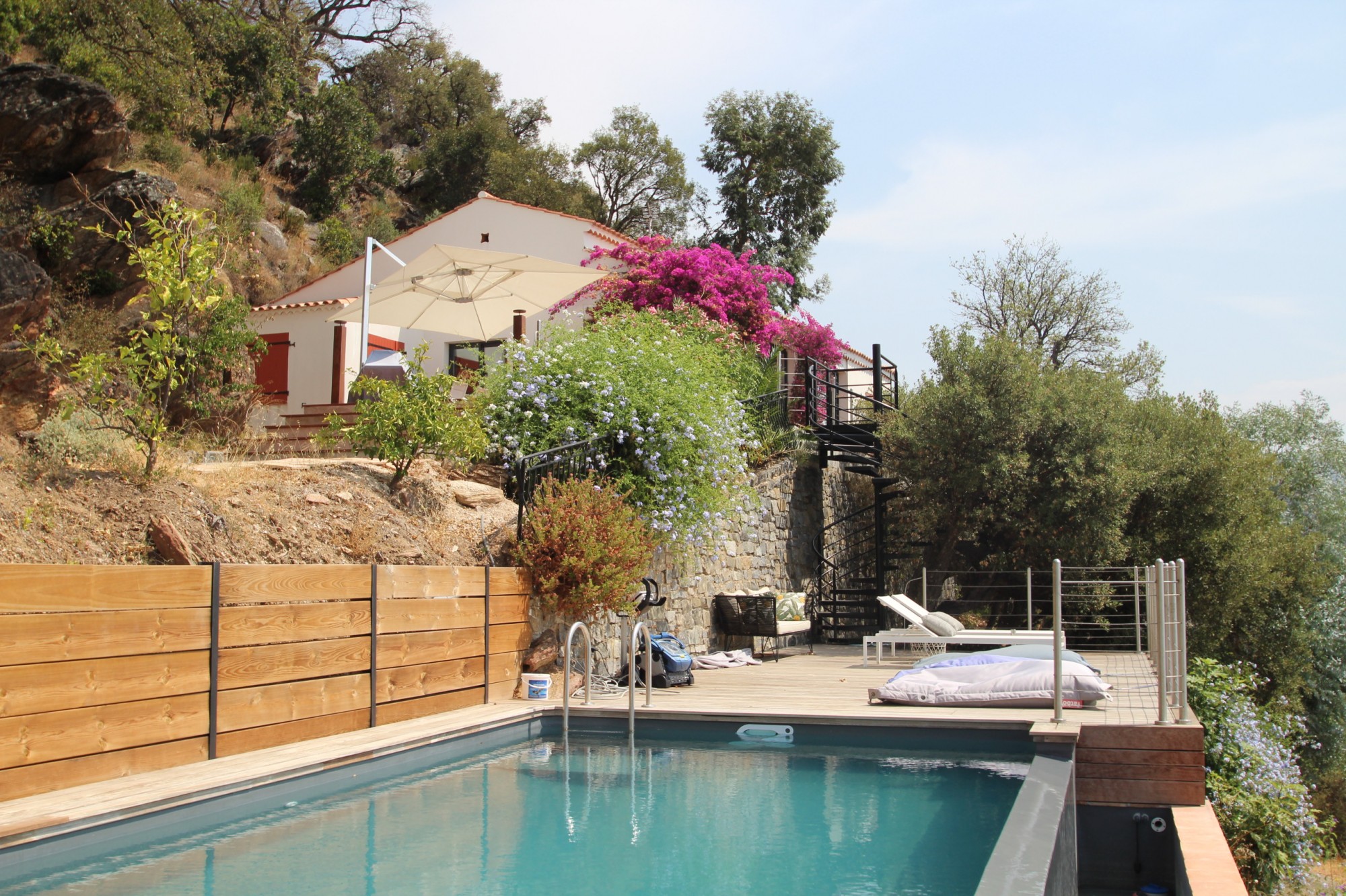 Buanderie, garage et piscine à débordement de 40 m².
