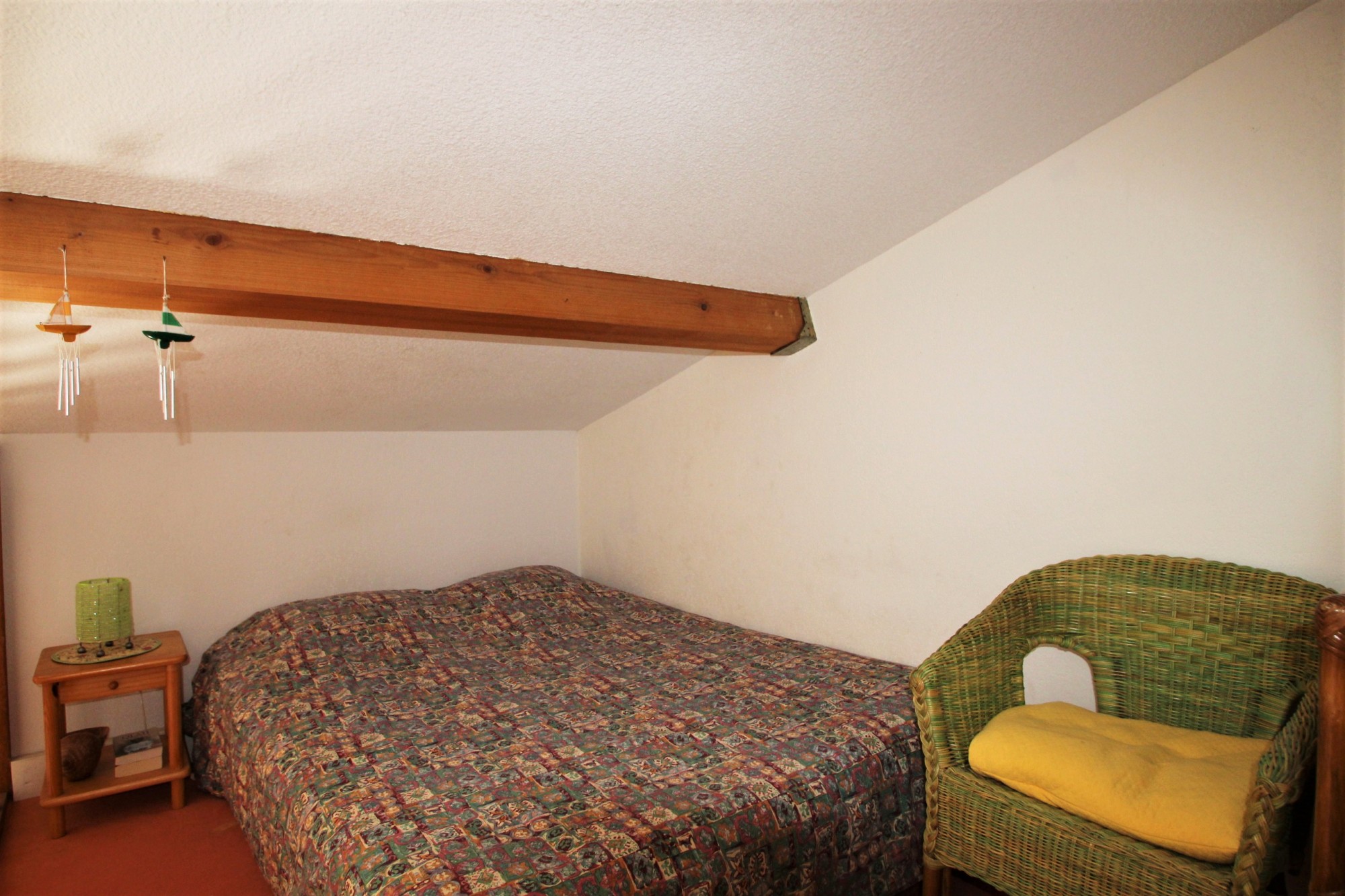 - à l'étage: chambre, salle d'eau et coin rangement.