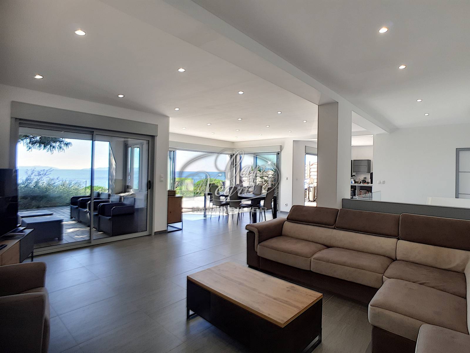 Cette splendide propriété contemporaine d'environ 200 m², entièrement rénovée et exposée plein Sud, est bâtie sur un terrain paysagé de 1490 m², à seulement 80 m de la sublime plage de Cavalière.
