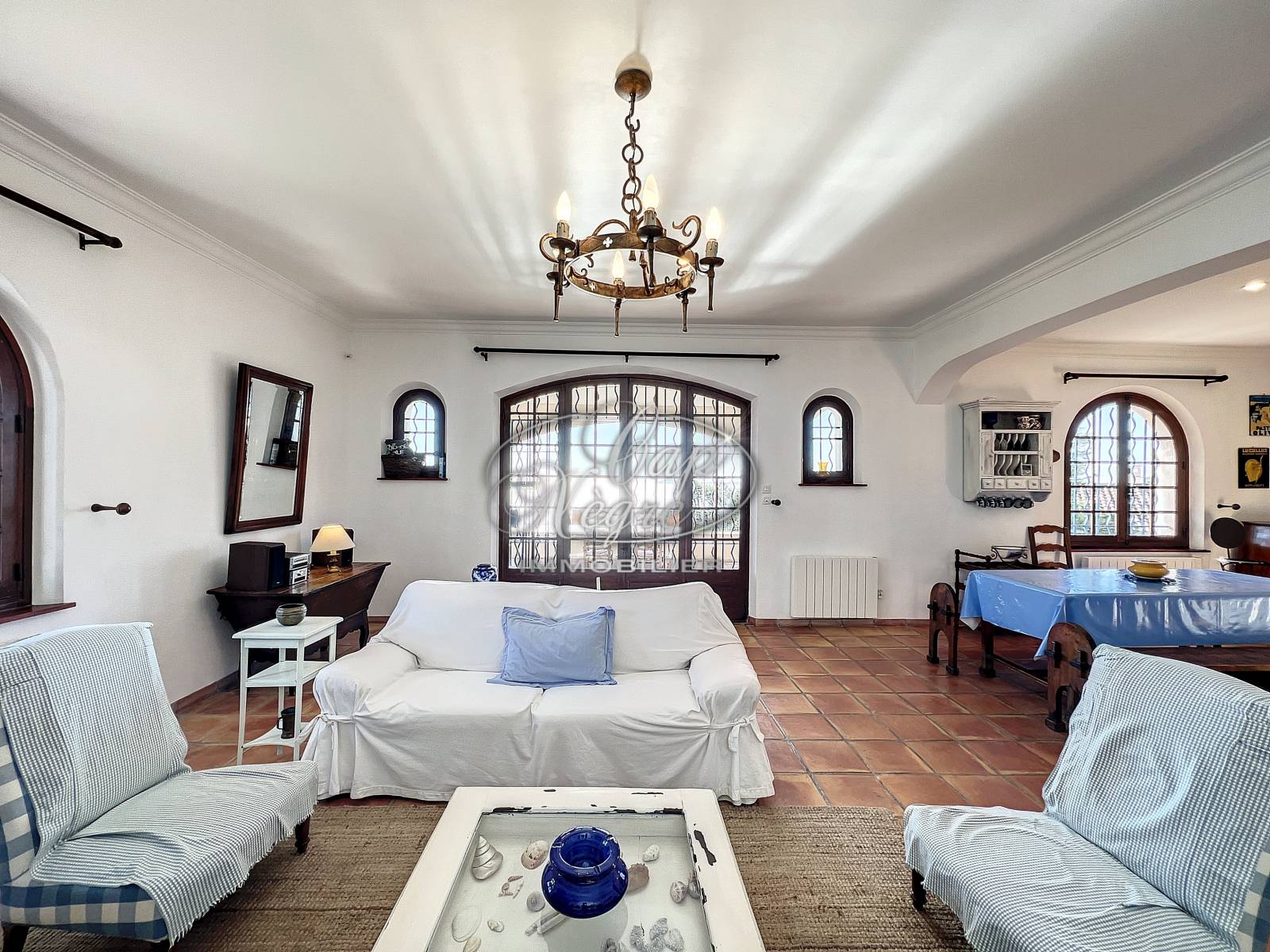 Située à proximité des commerces et de la plage du Bailly (600m), cette propriété vue mer a été rénovée au début des années 2000 en conservant le charme d’antan tout en sobriété avec de hauts plafond, les parefeuilles en terre cuite au sol ainsi que la cheminée.