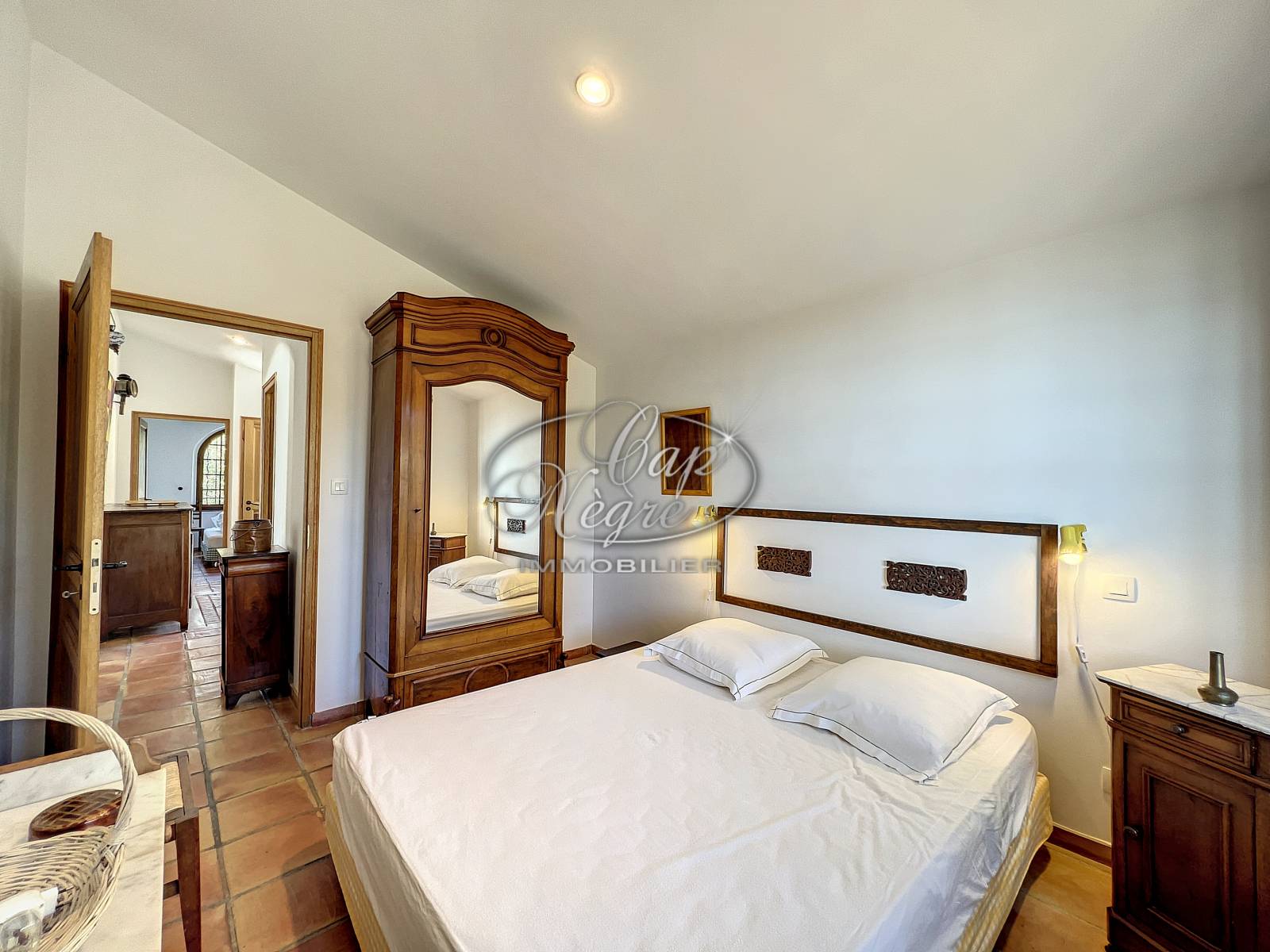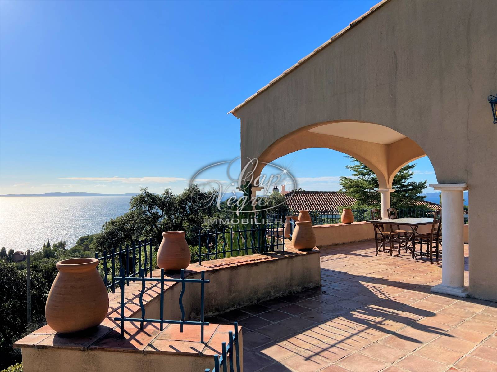 Edifiée sur un terrain arboré de plus de 2000m², l'habitation principale se compose de plain-pied d'un hall d'entrée suivi par le magnifique séjour avec cuisine ouverte ; le tout s'ouvre sur une grande terrasse puis le jardin et l'imprenable vue sur la baie du Rayol. L'espace nuit comprend 4 chambres au total, 3 chambres et 2 salles de bains de plain-pied. La quatrième chambre est indépendante avec sa propre salle d'eau et wc.