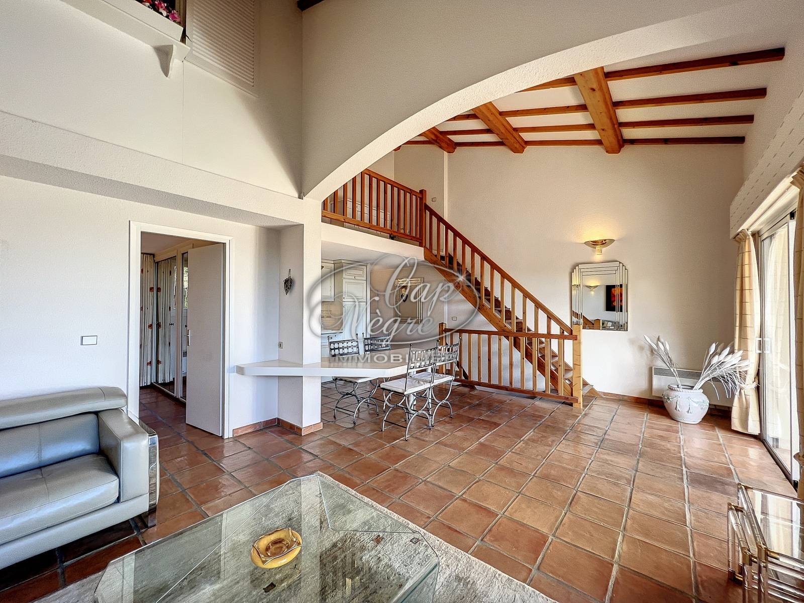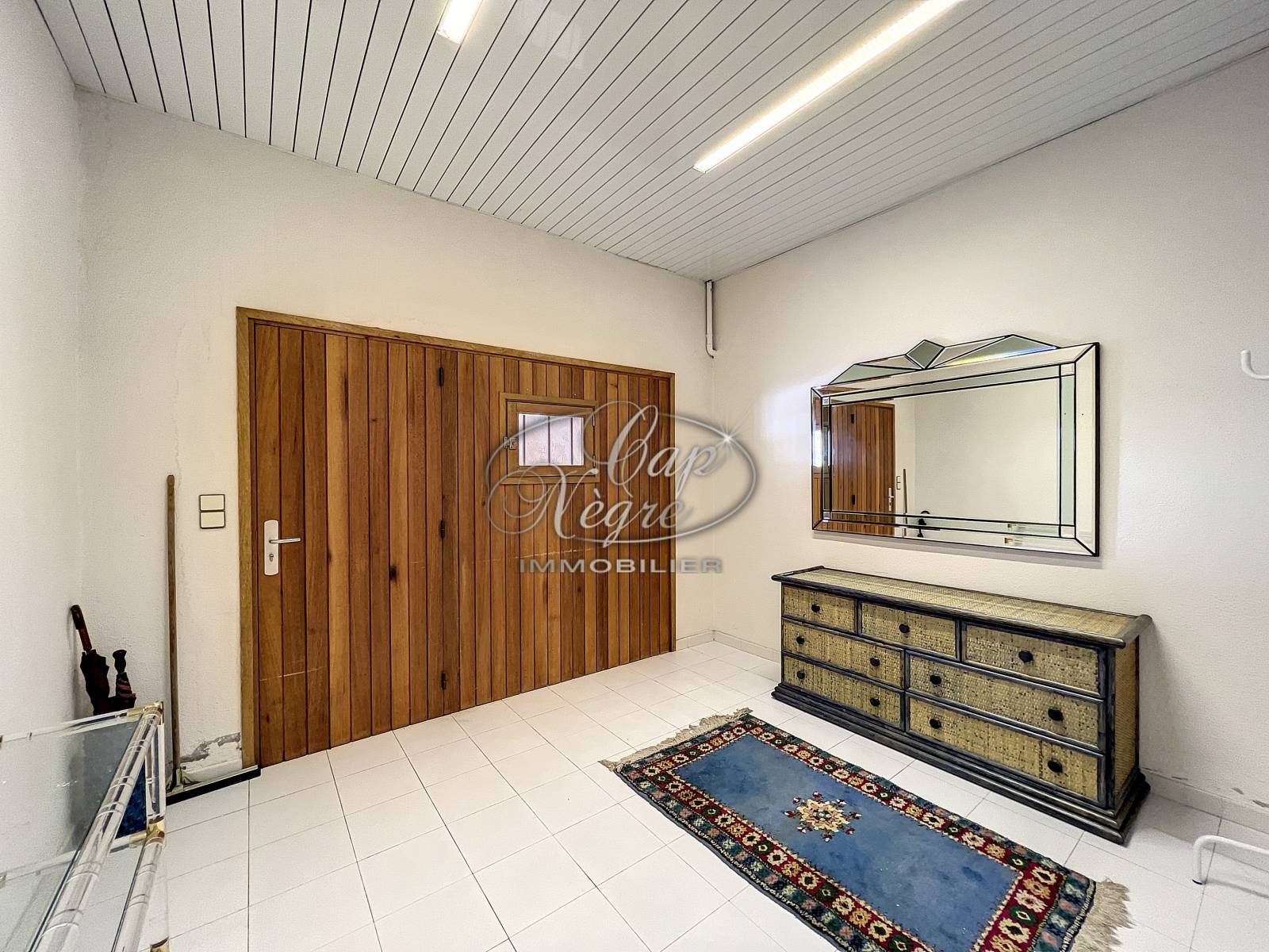 - RDC : entrée, séjour, cuisine (refaite), une chambre. De là, nous accédons à la terrasse avec un espace barbecue et la piscine dans l'alignement de la vue mer. Une salle d'eau et un WC se trouvent également à ce niveau.
