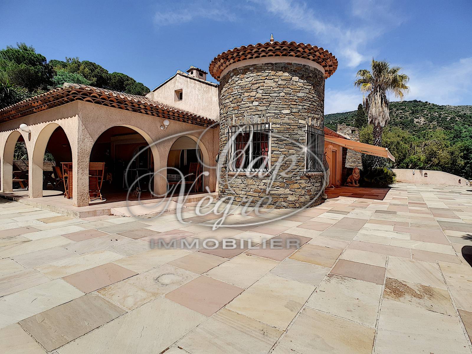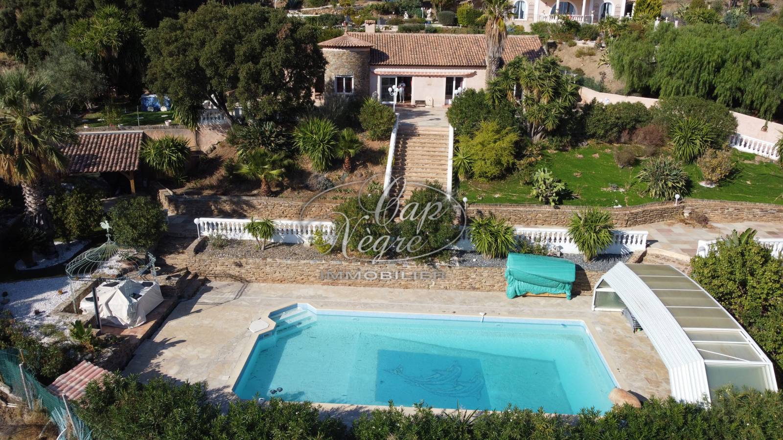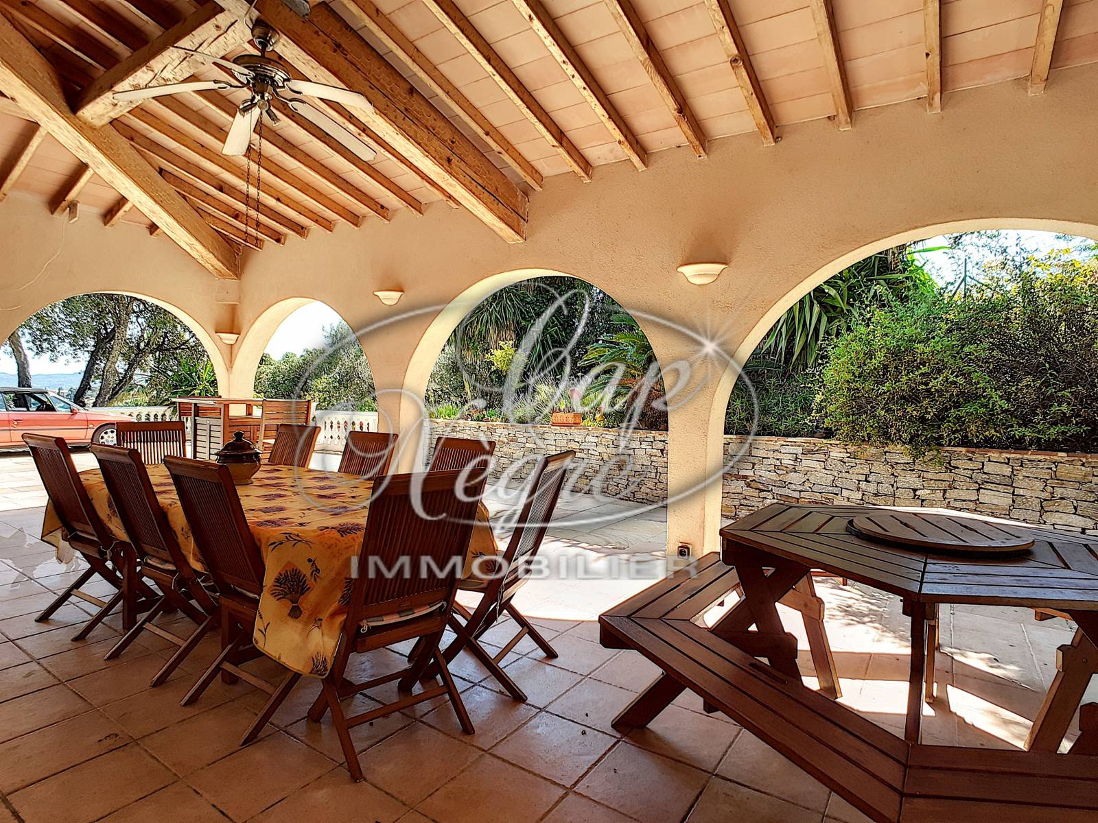 Propriété vue mer complètement au calme. Située en pleine nature, à quelques minutes en voiture du centre-ville du Lavandou et de ses plages, elle se compose d'un double séjour très lumineux avec cheminée, une cuisine séparée ; le tout ouvrant sur plusieurs terrasses couvertes ou non.