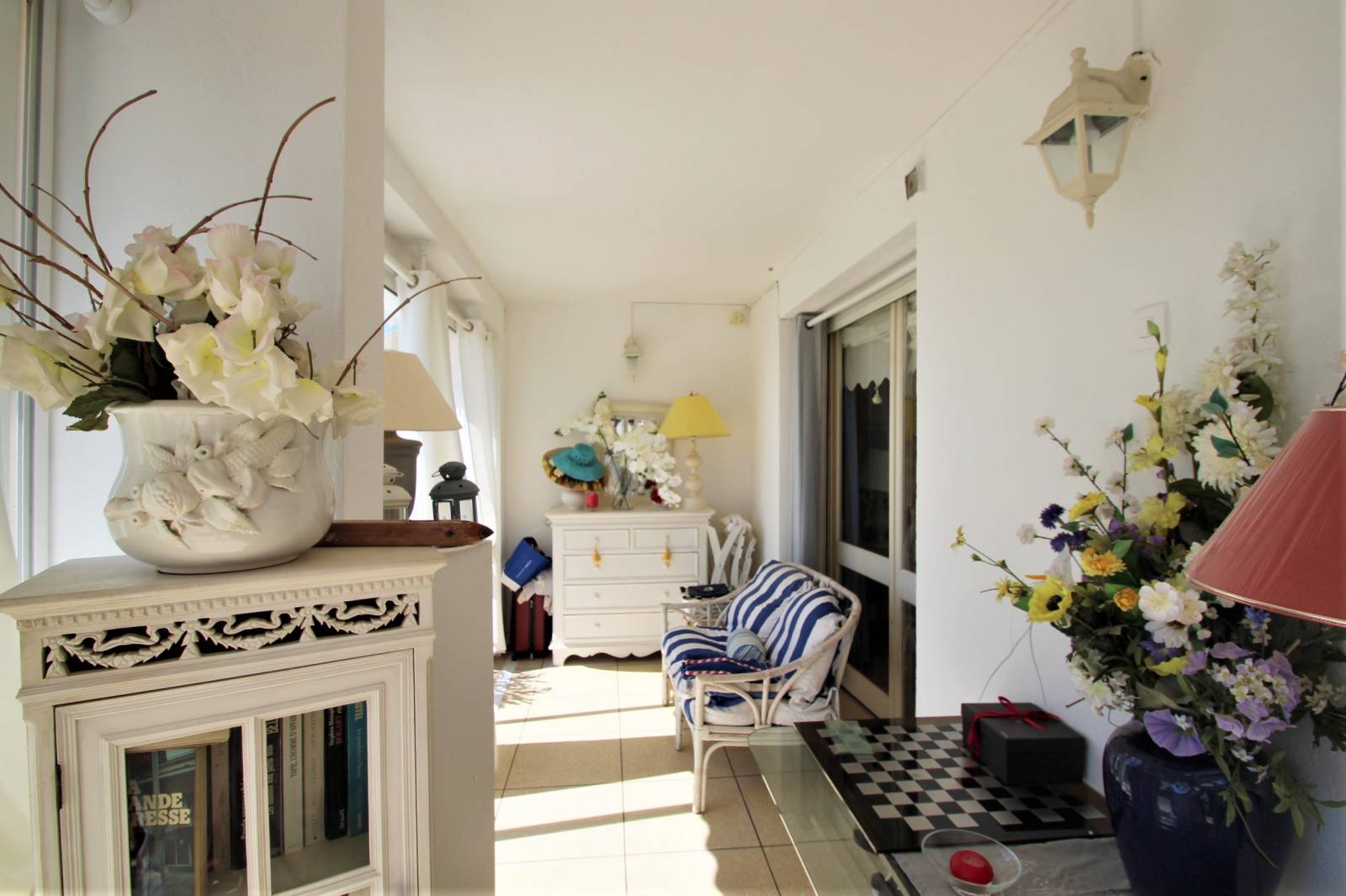 Entrée, cuisine équipée, spacieux salon-séjour avec vue mer, une chambre de 15m² avec salle d'eau privée, WC séparés, véranda de 17.7m² (inclus dans la surface) .