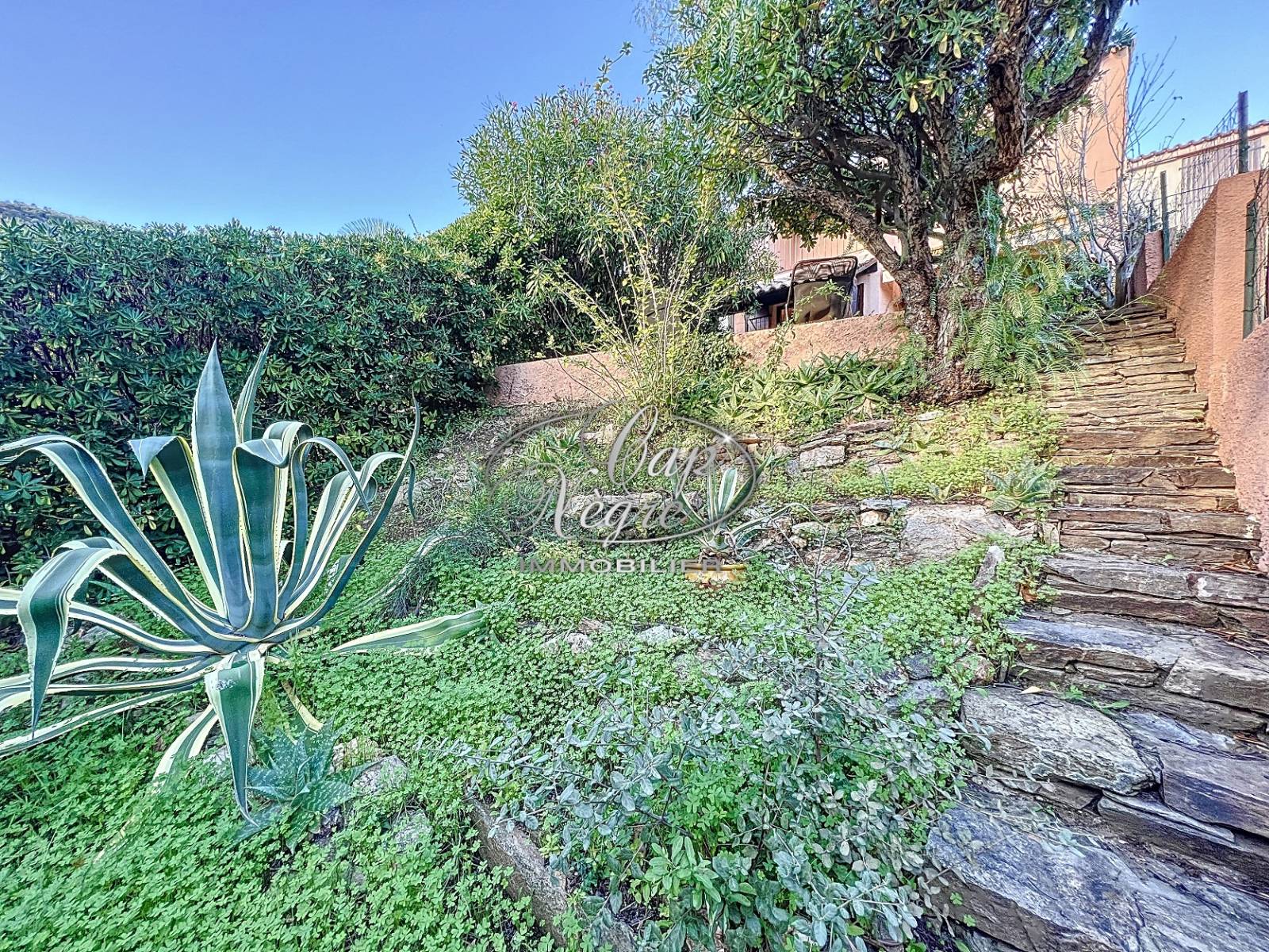 - A l'étage, deux autres chambres, salle de bains avec WC et une seconde terrasse, couverte avec une jolie vue dégagée sur les collines environnantes. - La résidence dispose d'un portail avec digicode et d'une piscine avec vue sur la mer et les îles d'or.