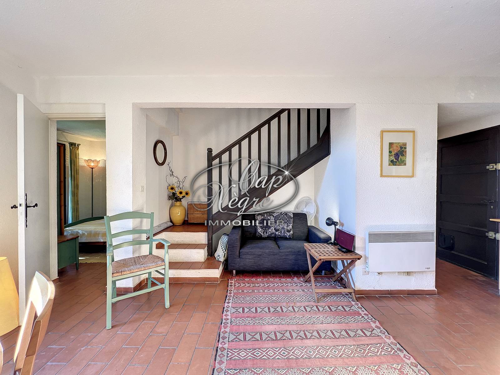 Dans une résidence privée sécurisée, à quelques minutes à pied de la superbe plage de Pramousquier dite "La Mystérieuse", ce charmant mazet d'environ 52 m² sur deux niveaux comprend: