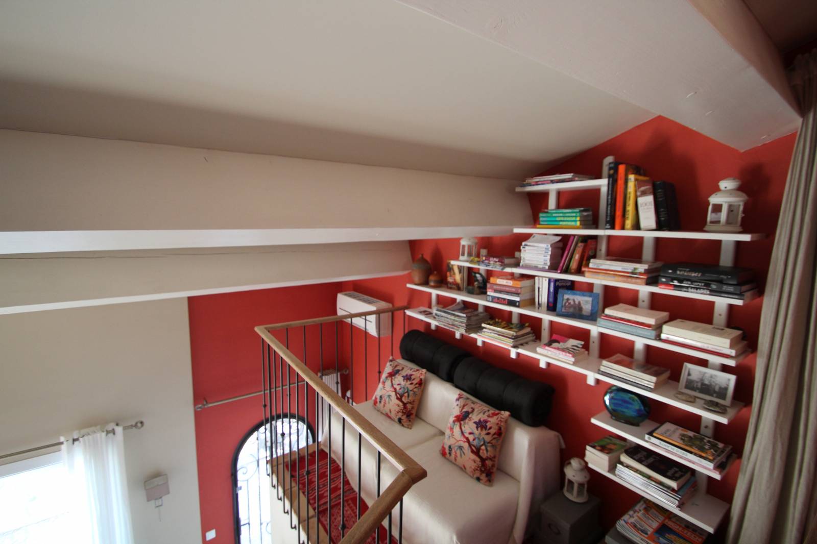 - à l'étage: un coin bibliothèque, une chambre parentale climatisée avec balcon et terrasse sur le toit aménagée d'un store.