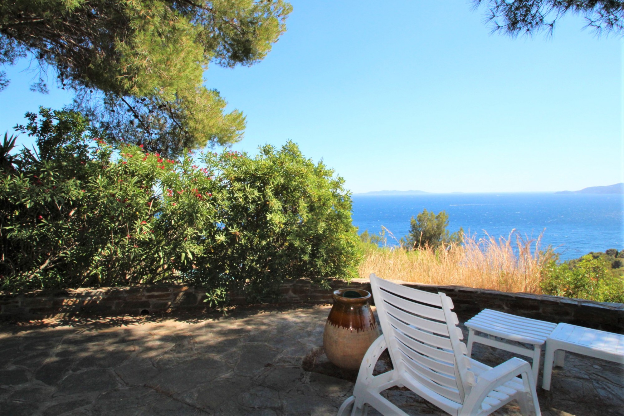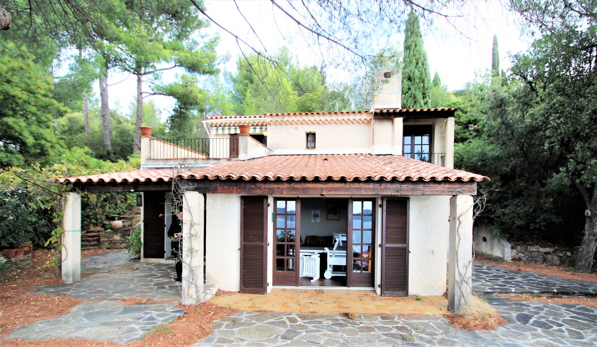 Toutes les pièces ont vue sur la mer. L'ensemble est sur un terrain arboré de 1245m², très rare dans le secteur. Possibilité d'extension de l'existant et de piscine avec pool-house.