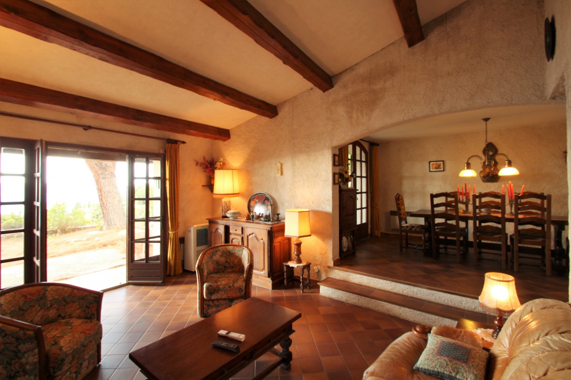 - au rez-de-chaussée:une cuisine ouverte sur une grande salle à manger, un spacieux salon avec cheminée, une chambre donnant sur la terrasse vue mer et salle de bains privée.