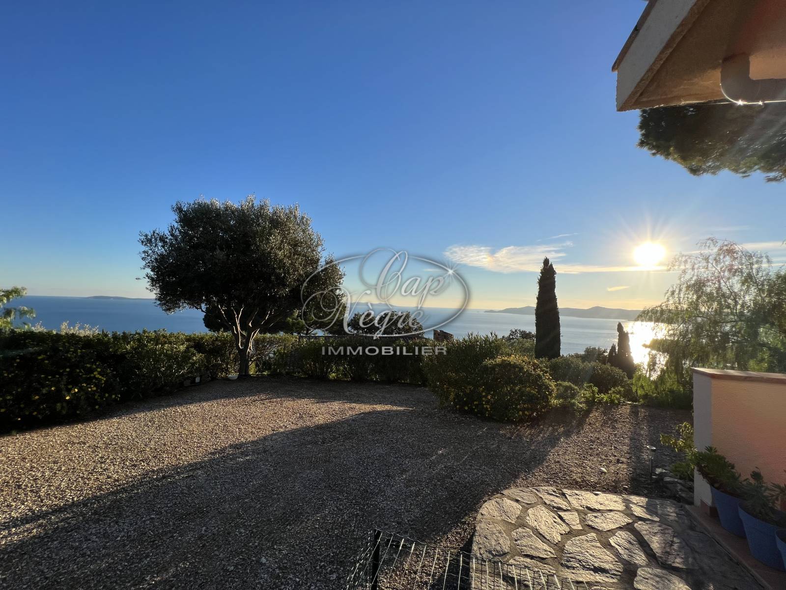 A l'étage, un appartement composé d'un hall d'entrée suivi de l'espace de vie lumineux avec une vue panoramique sur la mer et les iles, le tout agrémenté d'une importante cheminée en pierre de Bormes et ouvrant sur une terrasse au Sud et à l'Est. Une cuisine séparée, une chambre en suite, une salle d'eau, une seconde chambre et des WC séparés