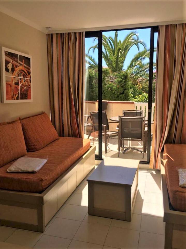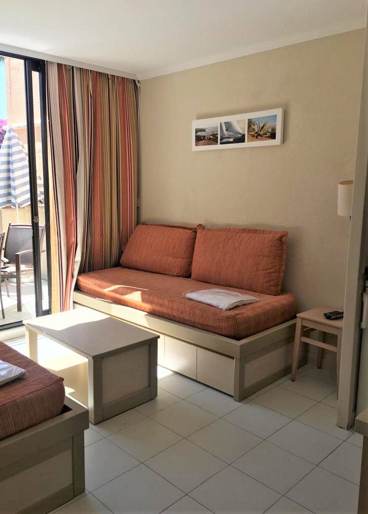 - une salle de séjour avec coin cuisinette aménagé ouvrant sur la terrasse