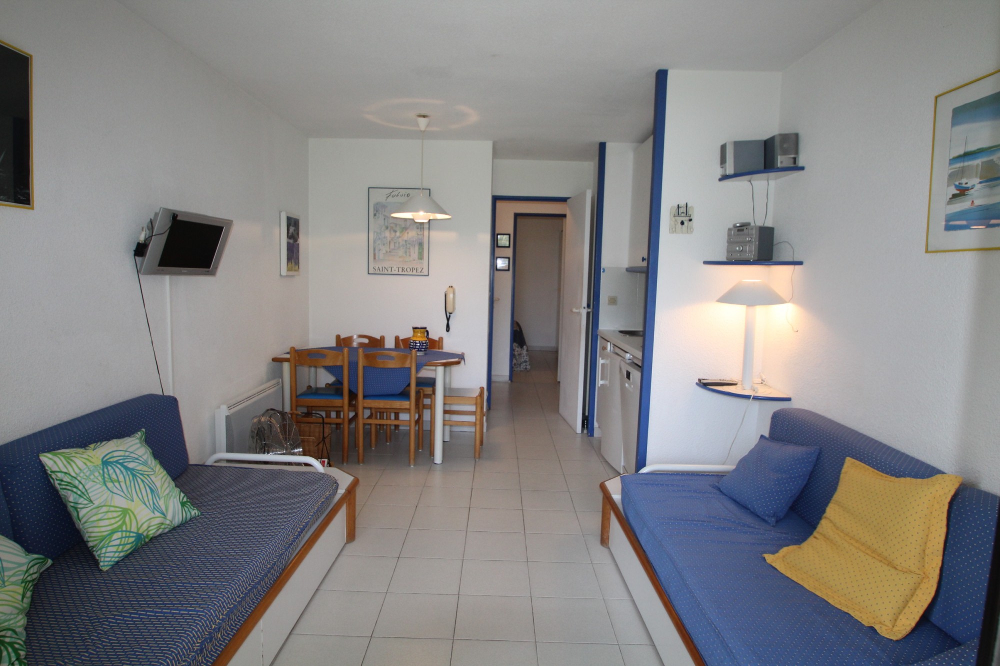 Dans une résidence sécurisée en face de la plage, cet appartement de type T2 avec jardin et loggia se compose: séjour avec accès direct à l'extérieur, coin cuisinette aménagé, dégagement avec rangements, salle d'eau, WC séparé, une chambre avec rangements. Classe énergie D. Place de parking privée en sous-sol. Copropriété de 165 lots. Pas de procédure.