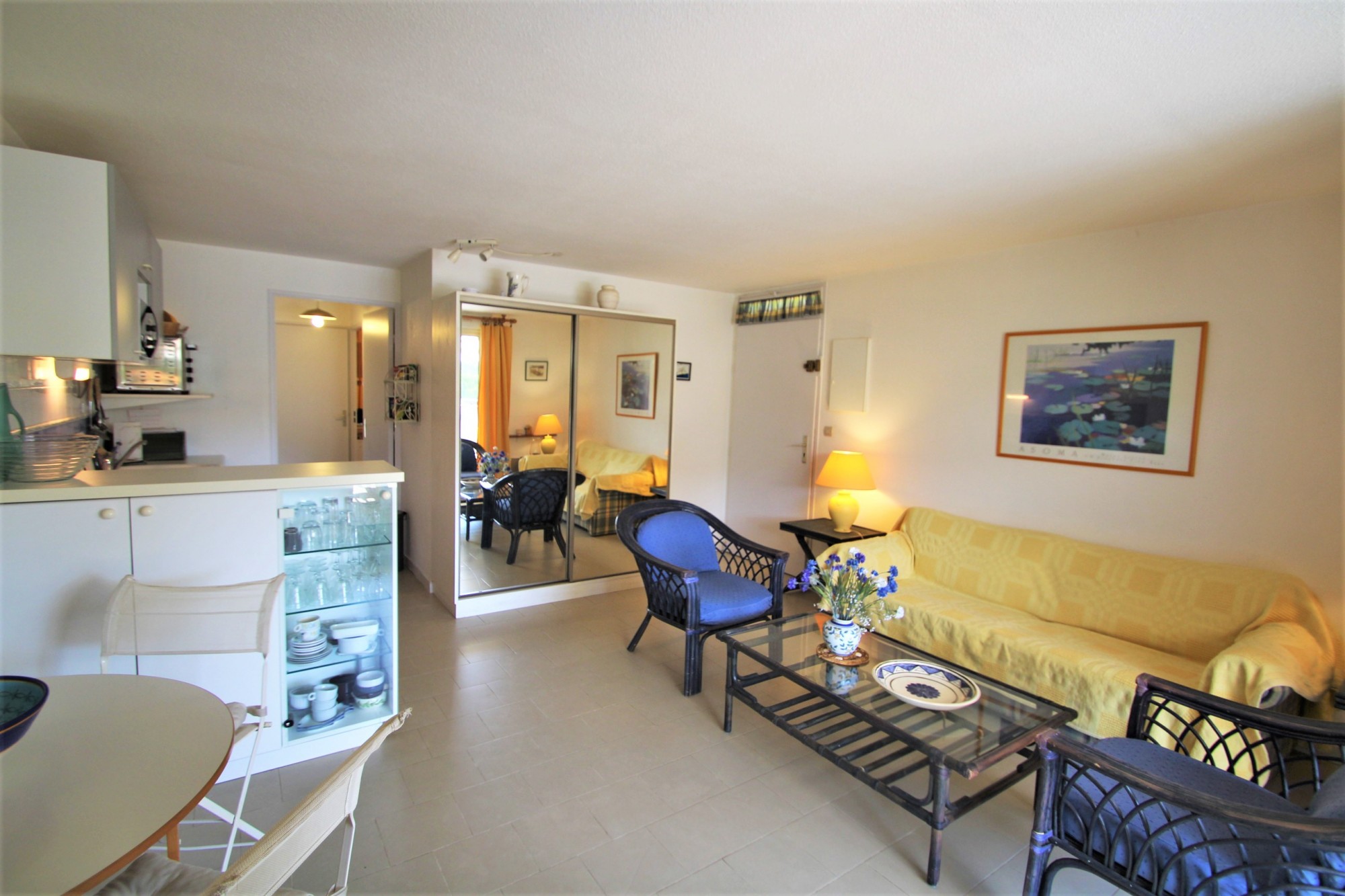 Situé dans une résidence prisée avec piscine, à vendre appartement T3. Il se compose d'une entrée, pièce à vivre avec cuisine équipée, deux chambres, une salle d'eau, wc séparés, terrasse vue sur la végétation et la résidence.