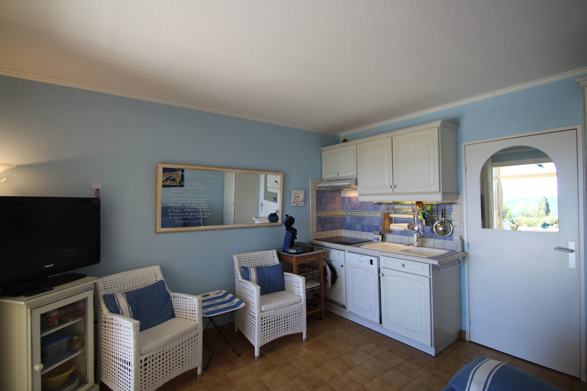 Dans une résidence privée avec piscine, dans un environnement de qualité: bel appartement en rez de jardin avec une très belle vue sur la mer.