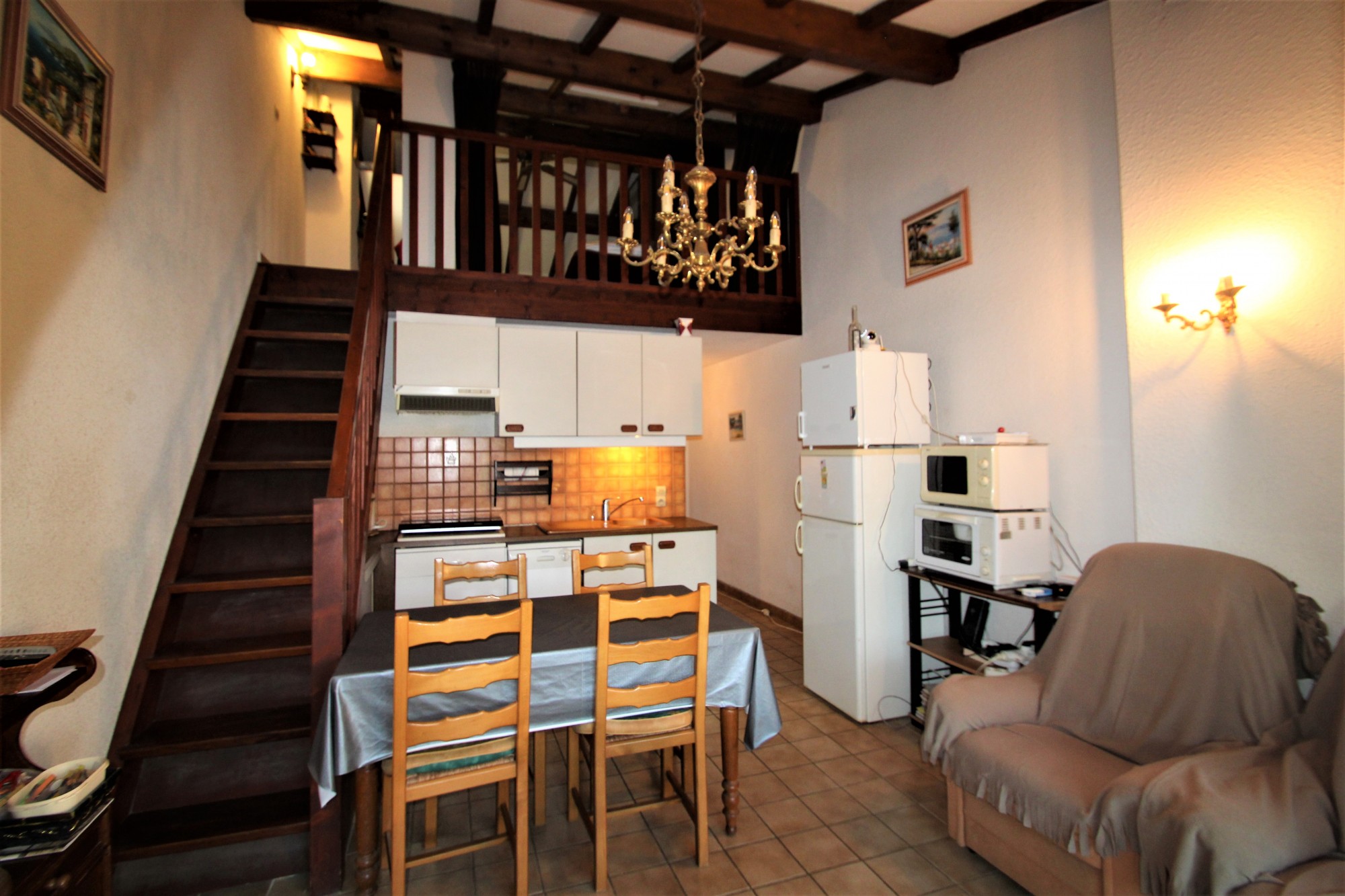 Dans une résidence au calme et proche de la plage de Cavalière, à vendre Mazet de type 2 pièces-cabine en duplex d'environ 40m². Il se compose de : Accès par un petit jardin, entrée, pièce à vivre avec coin cuisine, une chambre de plain pied, salle de bain, wc, une chambre en mezzanine. Ce bien bénéficie d'un jardin privatif d'environ 70m². Garage. Emplacement de parking privé. PRIX : 273 000€ Honoraires inclus 5%